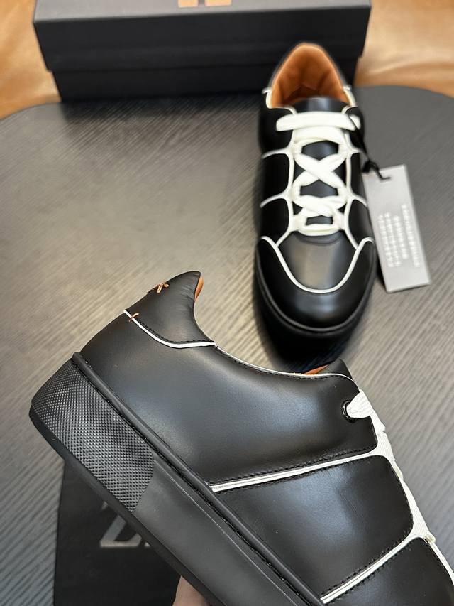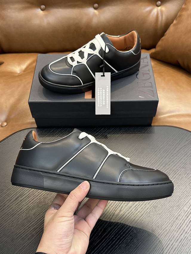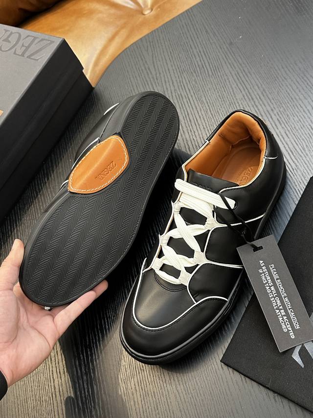 工厂P价P: 热卖款!杰尼亚 休闲运动鞋 这款 Triple Stitch 低帮运动鞋以柔软的牛皮搭配麂皮制成,为休闲鞋履注入精致格调。标志性三重交叉弹性细节彰显出传统皮鞋的手工缝迹,轻盈和懒人套式设计,完美契合快节奏的生活方式。非常轻盈的橡胶外底上点缀双条纹 Logo 运动细节,以超轻结构重新诠释标志性鞋款。小牛皮内裡,车中底套楦做法。易穿脱套脚交叉松紧带和 3D“波纹”设计。鞋舌热压品牌名称。轻便高弹力橡胶发泡鞋底,后跟加贴 Tpu 双条纹品牌 Logo 饰条。为这款运动鞋增添现代动感气息。码数39-