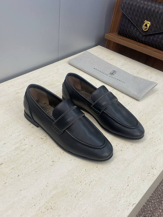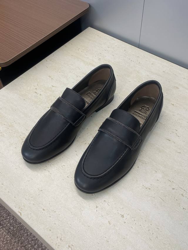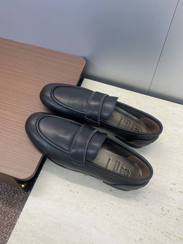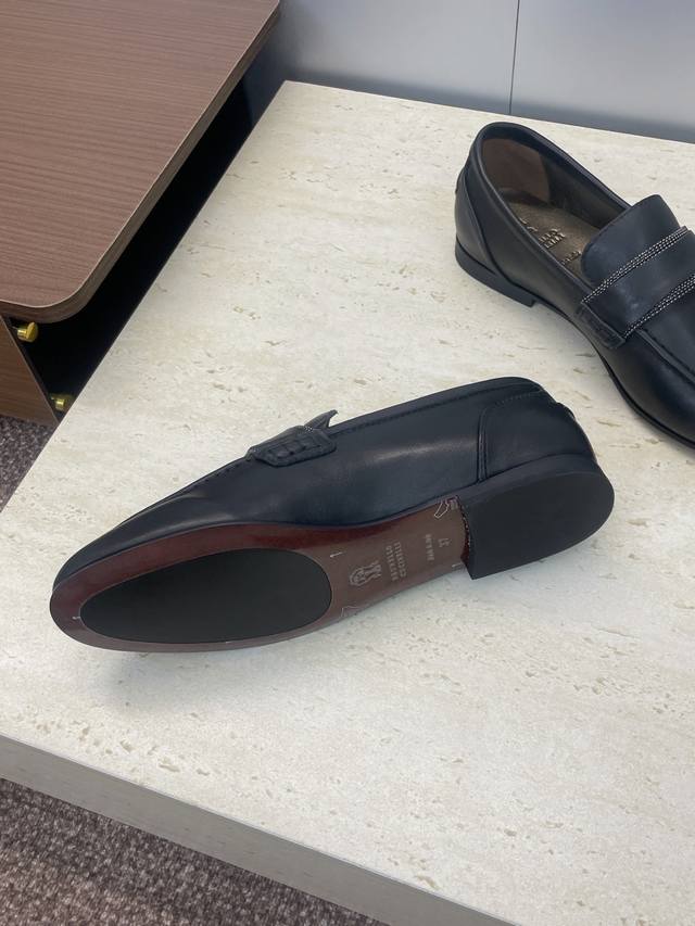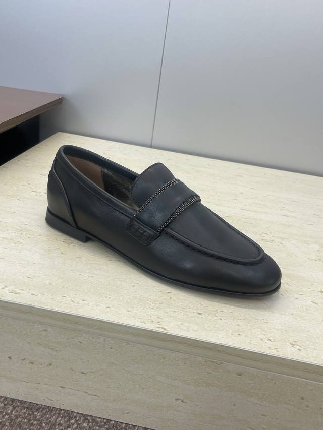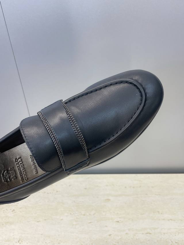 工厂p价p Brunello Cucineli 布鲁内诺库奇内利2025秋冬新款串珠女鞋 Bc 平底圆头复古乐福单鞋 材质:鞋面进口小牛皮 进口羊猄麂皮+水染羊