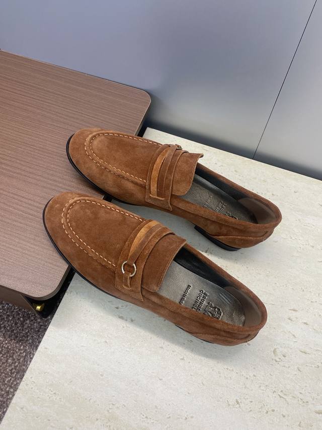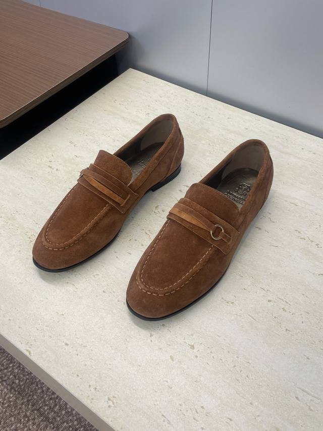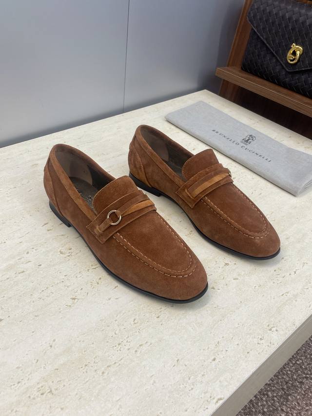 工厂p价p DDD Brunello Cucineli 布鲁内诺库奇内利2025秋冬新款女鞋 Bc 字母Logo五金皮带扣平底圆头复古乐福单鞋 DDD 材质:鞋面进口羊猄麂皮+水染羊皮内里+意大利注塑真皮大底 DDD Size:35-39 40 41 42 定做不退换 DDD