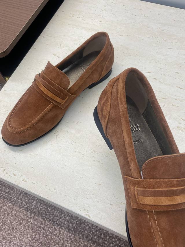 / 工厂p价p Brunello Cucineli 布鲁内诺库奇内利2025秋冬新款女鞋 Bc 字母Logo五金皮带扣平底圆头复古乐福单鞋 材质:鞋面进口羊猄麂皮+