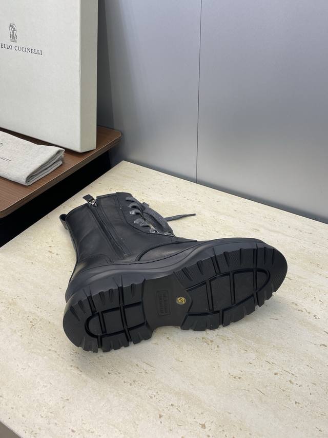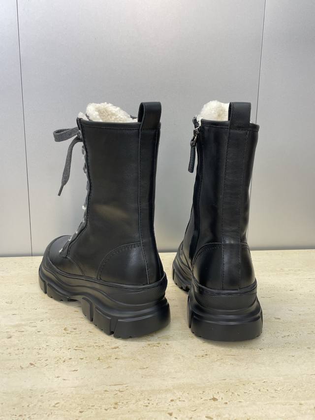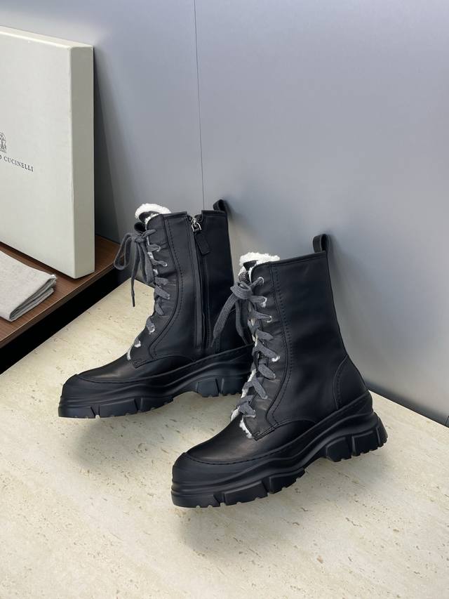/ 工厂p价p Brunello Cucineli 布鲁内诺库奇内利2025秋冬新款羊羔毛防寒保暖雪地女短靴 Bc 厚底低跟圆头系带机车骑士军靴 材质:鞋面进口小牛