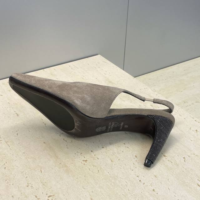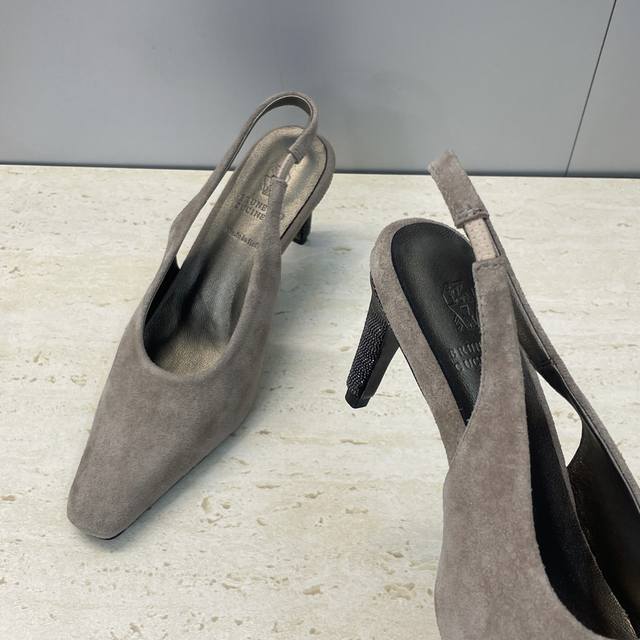工厂p价p Brunello Cucineli 布鲁内诺库奇内利2026早春新款串珠女鞋 Bc高跟小方头拼色后空凉鞋 材质:鞋面进口小牛皮 进口羊猄皮+水染羊皮