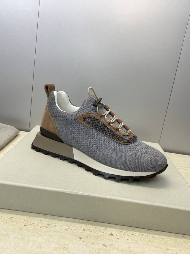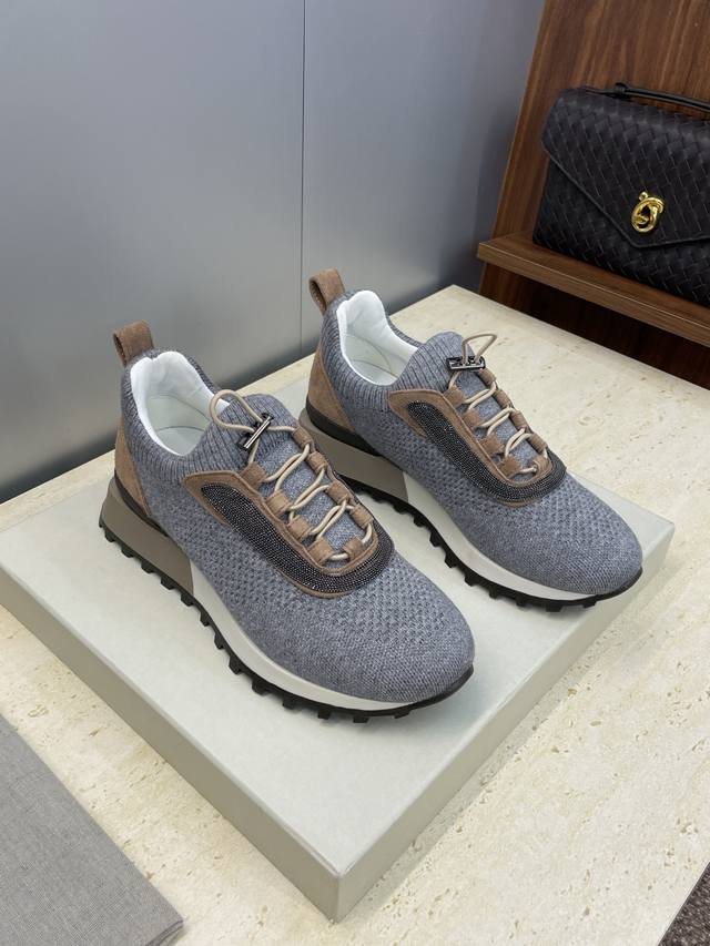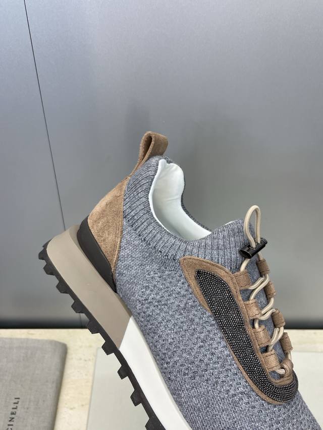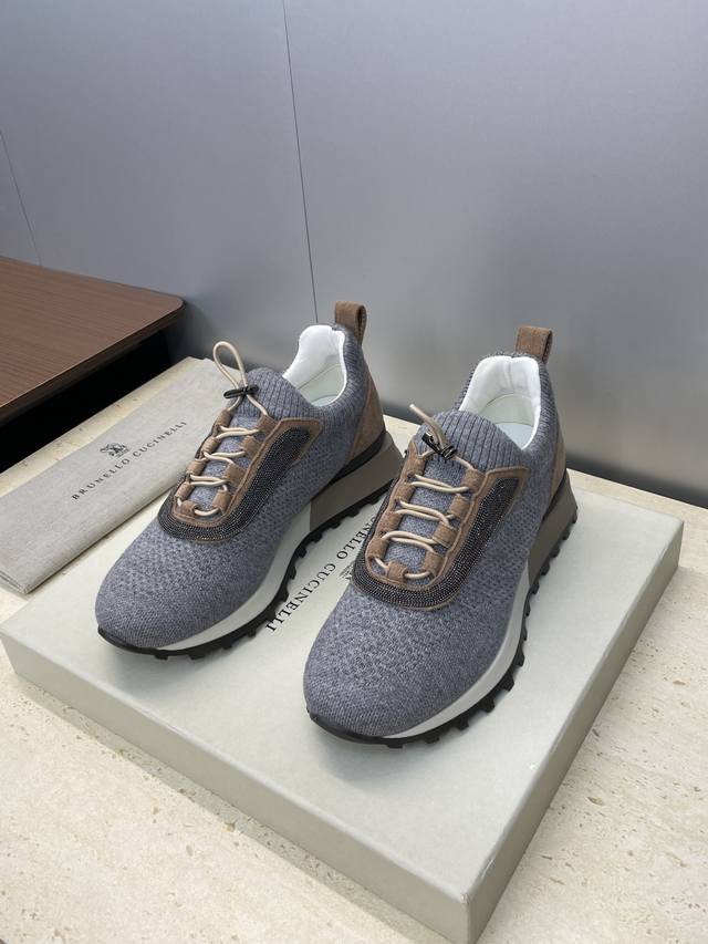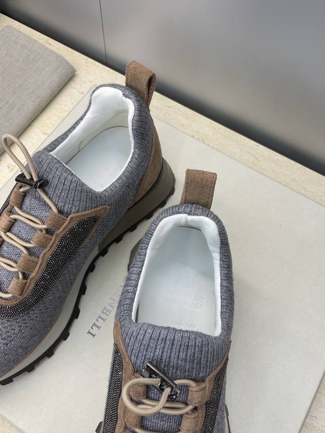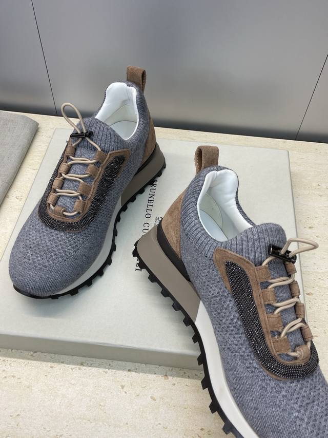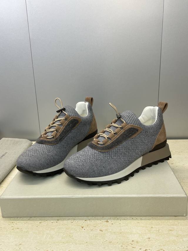 / 工厂p价p Brunello Cucinelli 2025秋冬新款拼色系带女鞋 Bc厚底圆头标志性串珠休闲运动跑鞋 材质:鞋面进口环保透气毛线筒科技面料+原版定
