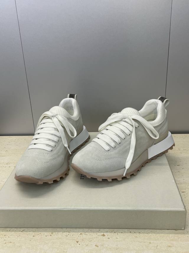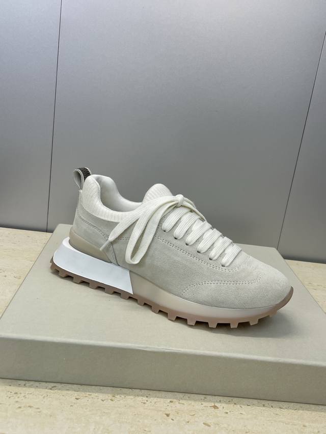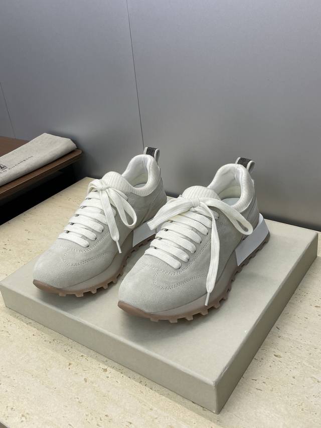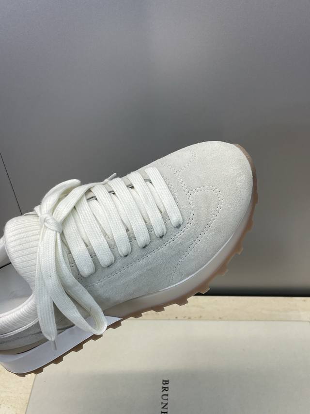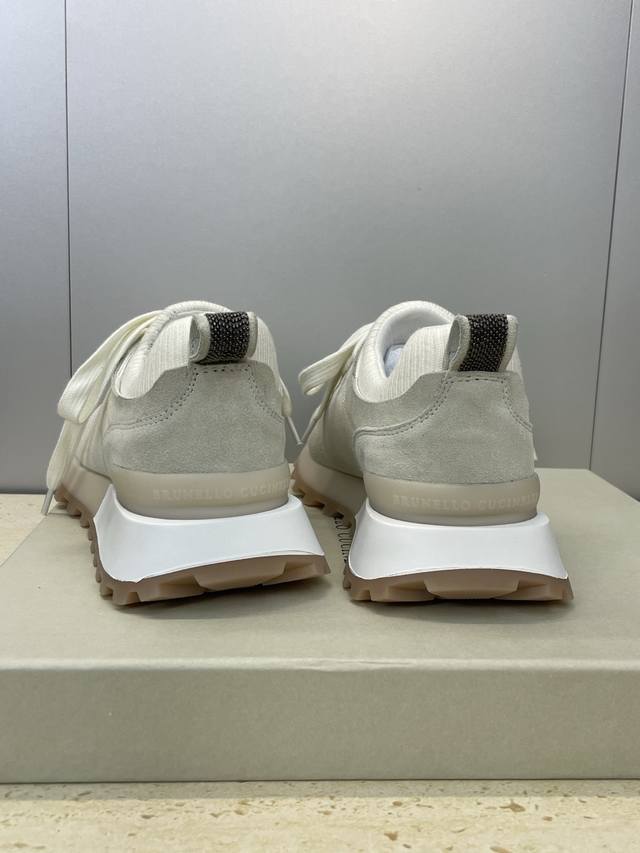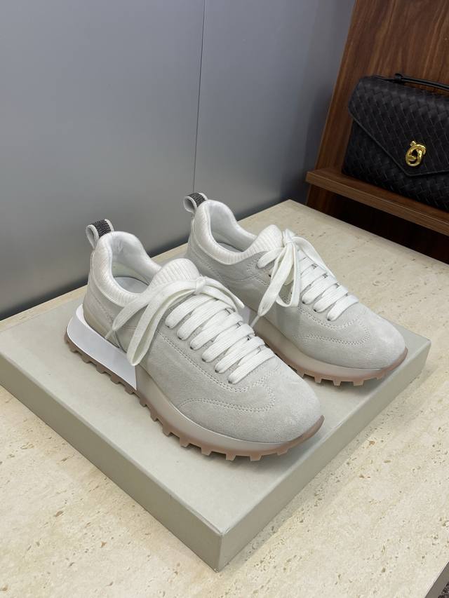 / 工厂p价p Brunello Cucinelli 2025秋冬新款拼色系带女鞋 Bc厚底圆头毛线筒标志性串珠休闲运动跑鞋 材质:鞋面进口羊猄皮+水染羊皮内里垫脚
