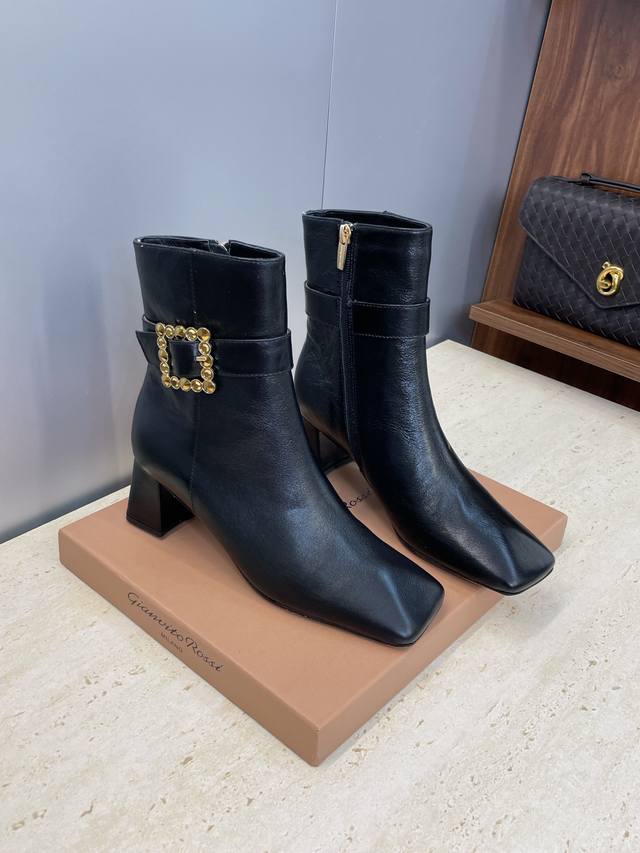 工厂P价P Gianvito Rossi 塞乔.罗茜2025秋冬新款及裸机车粗跟女靴 Gr字母Logo五金扣高跟方头侧拉链机车骑士短靴 材质:鞋面进口小牛皮 进