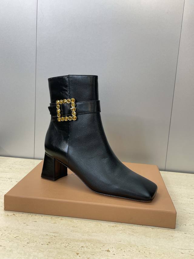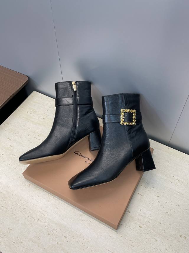 / 工厂P价P Gianvito Rossi 塞乔.罗茜2025秋冬新款及裸机车粗跟女靴 Gr字母Logo五金扣高跟方头侧拉链机车骑士短靴 材质:鞋面进口小牛皮 进