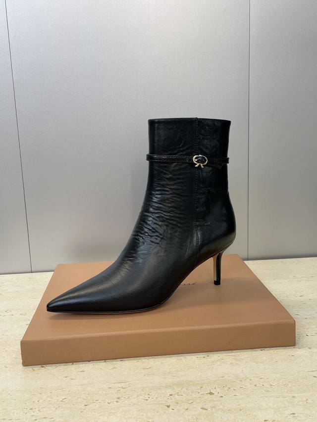 工厂P价P Gianvito Rossi 塞乔.罗茜2025秋冬新款及裸马丁女靴 Gr字母Logo五金扣高跟尖头侧拉链机车骑士短靴 材质:鞋面进口小牛皮 进口羊猄皮+水染羊皮内里+意大利真皮大底 跟高:6.5Cm Size:34-42 34.40.41.42定做不退换