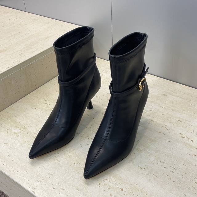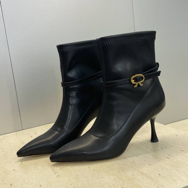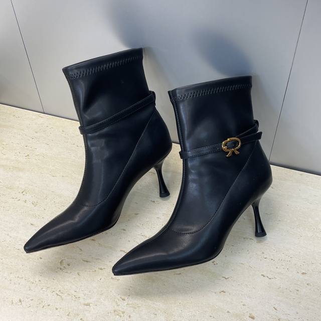 工厂p价p Ddd Gianvito Rossi 塞乔.罗茜2025秋冬新款及裸马丁弹力女靴 Gr字母Logo五金扣高跟尖头一脚蹬机车骑士短靴 Ddd 材质:鞋面进口弹力超纤+水染羊皮垫脚+意大利真皮大底 Ddd 跟高:6.5Cm Ddd Size:34-42 34.40.41.42定做不退换 DDD