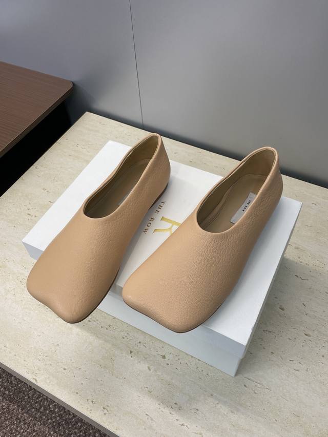 工厂P价P The Row 2025秋冬新款乐福女鞋 平底方头一脚蹬深口单鞋 材质:鞋面进口混种羊皮+水染羊皮内里+意大利真皮大底 Size:35-39 40.