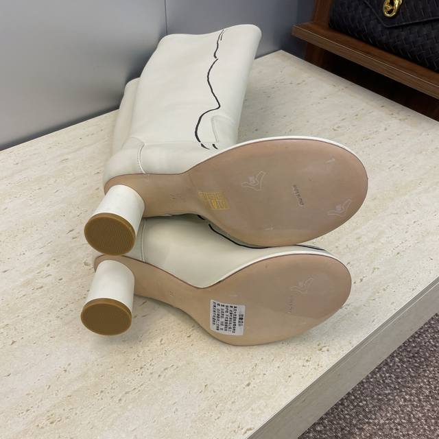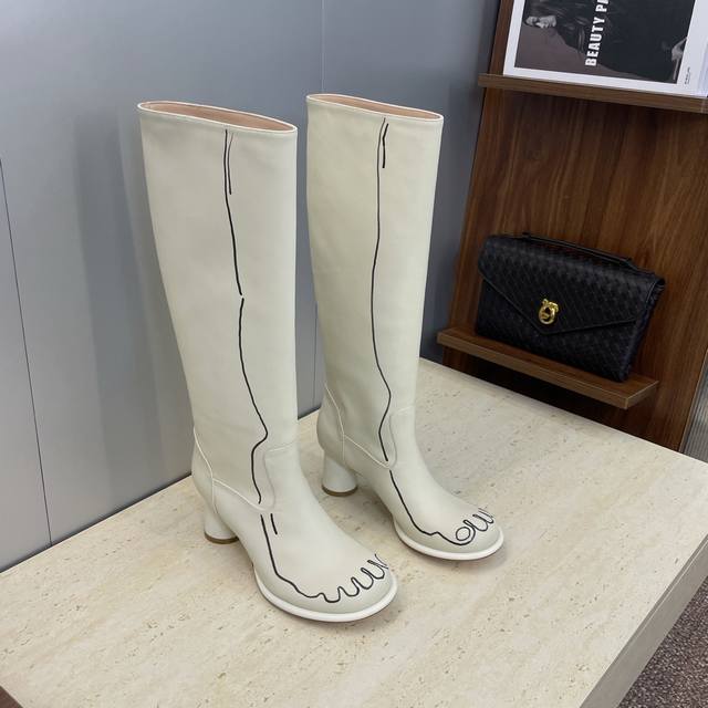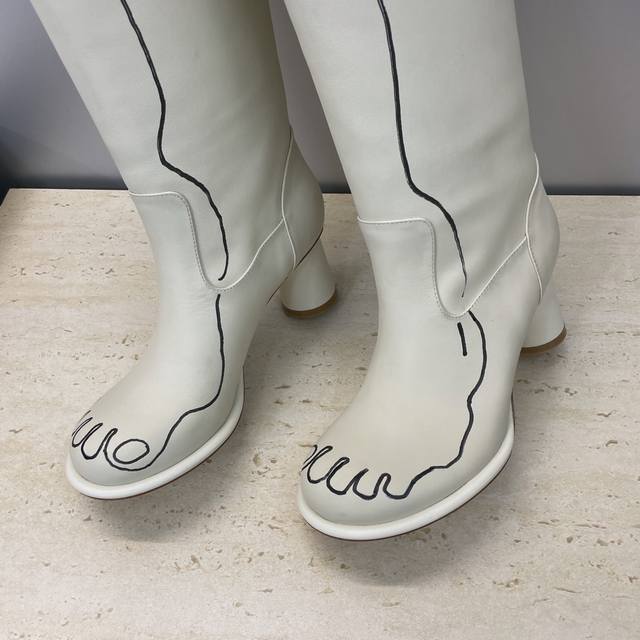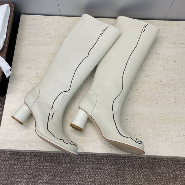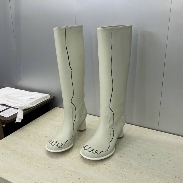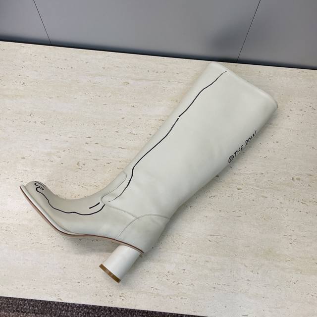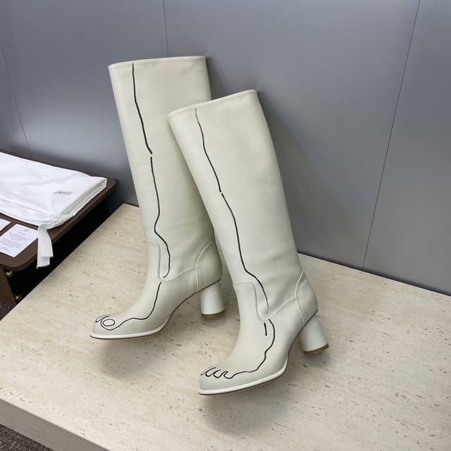 工厂P价P The Row 2025秋冬新款手绘涂鸦机车及膝女长靴 高跟圆头一脚蹬骑士高筒靴 材质:鞋面进口小牛皮+水染牛皮内里垫脚+意大利真皮大底 跟高:7.5Cm 36码数据 筒高38 筒围33 前后码数递增递减0.5Cm Size:35-41 40.41定制不退换