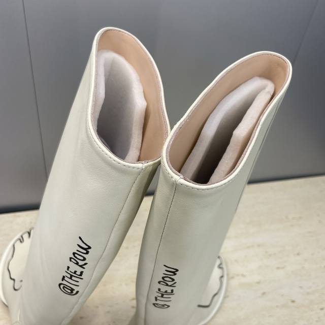 / 工厂P价P The Row 2025秋冬新款手绘涂鸦机车及膝女长靴 高跟圆头一脚蹬骑士高筒靴 材质:鞋面进口小牛皮+水染牛皮内里垫脚+意大利真皮大底 跟高:7.