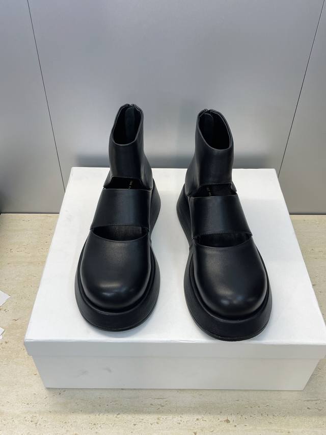 / 工厂p价p The Row 2026早春新款厚底及裸四季凉靴 平底圆头后拉链镂空复古女鞋 材质:原版定制进口混种羊皮 进口羊猄皮+水染羊皮内里+原版开模防滑大底