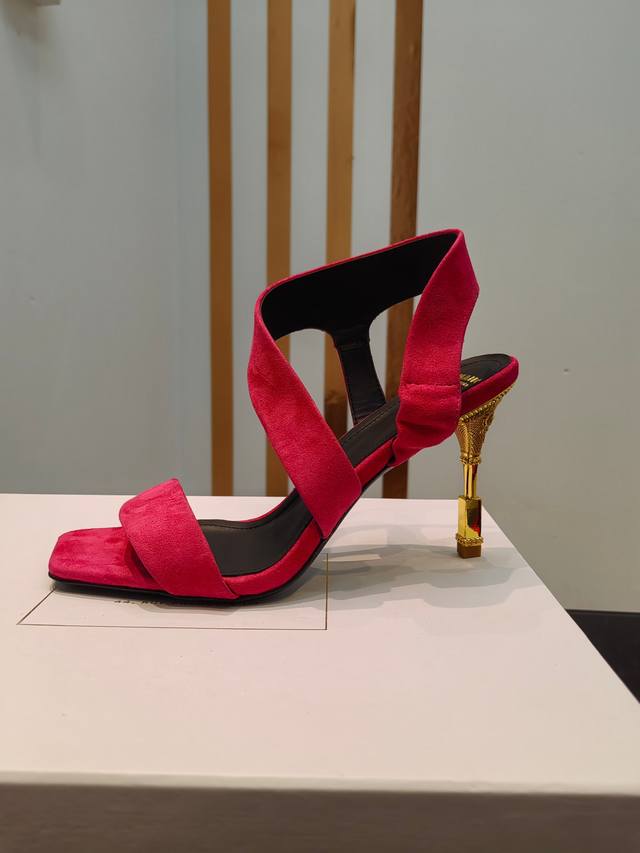 工厂P出, Balmain|巴尔曼新品 金属跟高跟凉鞋 面料进口羊京,内里是牛皮 意大利进口真皮大底! 跟高:9.5Cm 码数:35-39 40.41.42定制