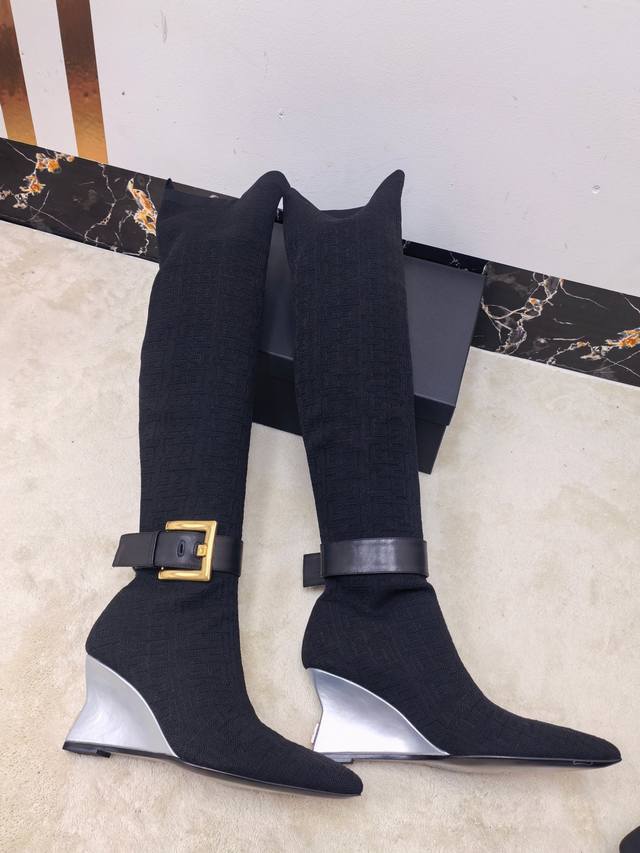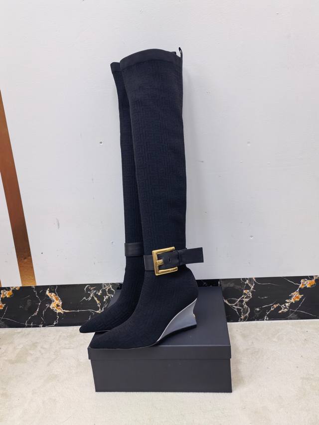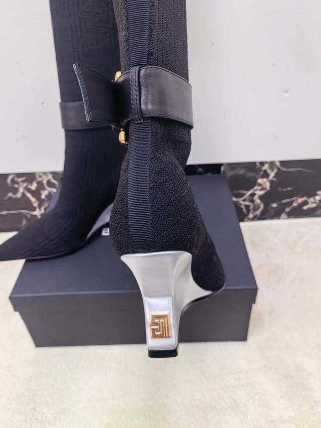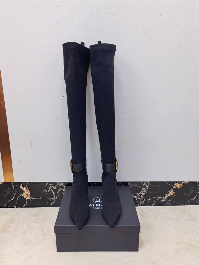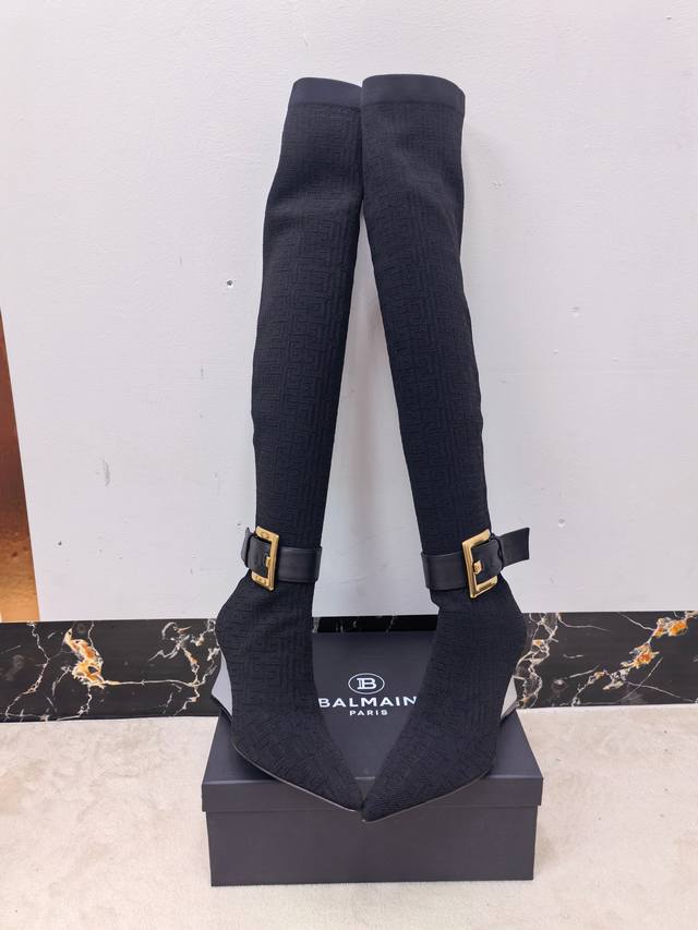 工厂P出 Balmain巴尔曼2025秋冬新款针织过膝弹力靴!海外订购原版1:1完美复刻! 鞋面:原版定制飞织鞋面+原版开模饰扣 内里.垫脚:牛皮里 跟高:7.5Cm Size:36-42 40、41、42码定做不退换