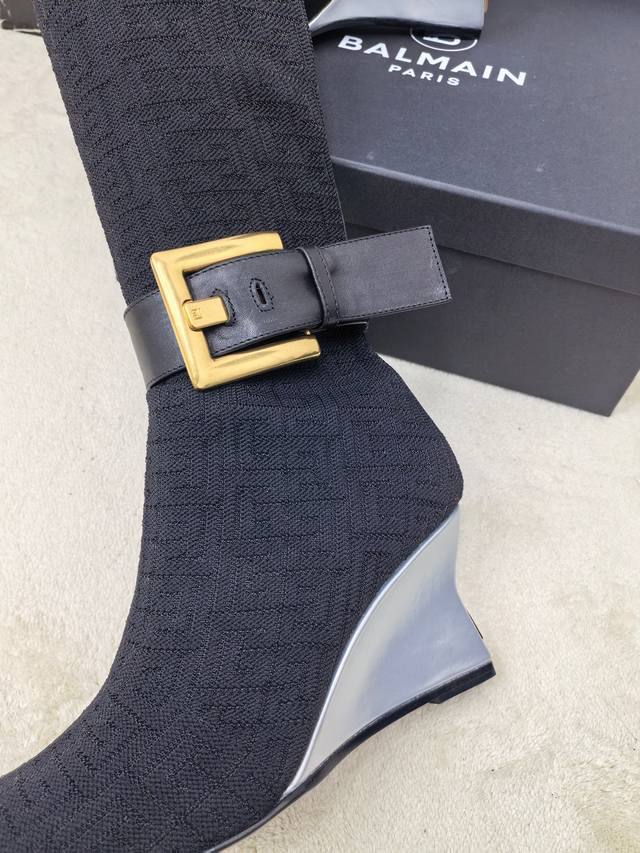 工厂P出 Balmain巴尔曼2025秋冬新款针织过膝弹力靴!海外订购原版1:1完美复刻! 鞋面:原版定制飞织鞋面+原版开模饰扣 内里.垫脚:牛皮里 跟高:7.