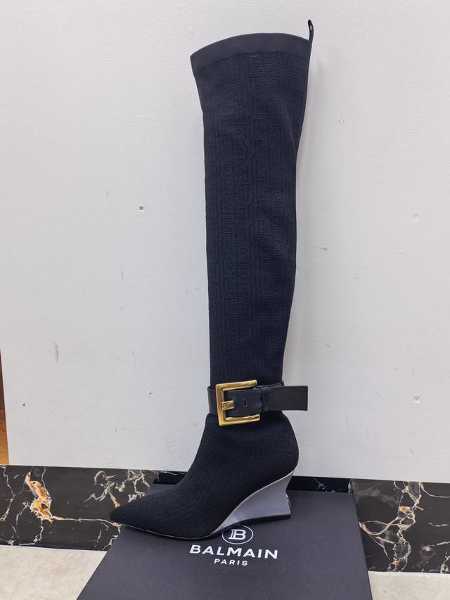 / 工厂P出 Balmain巴尔曼2025秋冬新款针织过膝弹力靴!海外订购原版1:1完美复刻! 鞋面:原版定制飞织鞋面+原版开模饰扣 内里.垫脚:牛皮里 跟高:7.