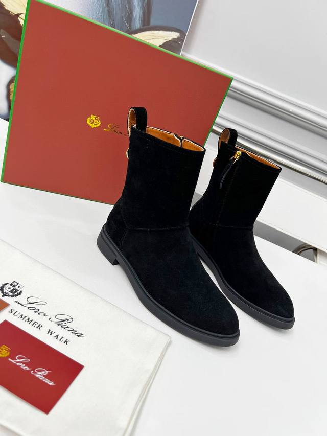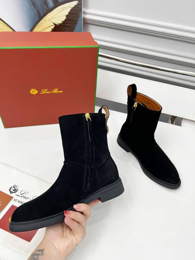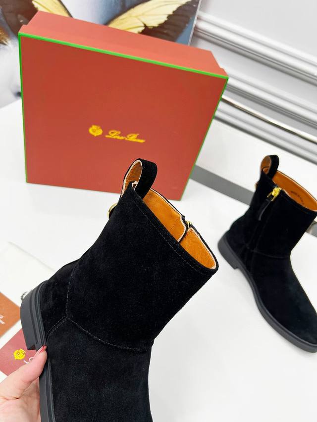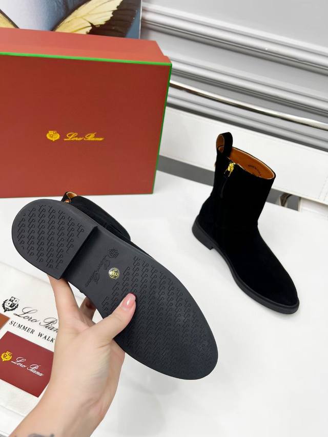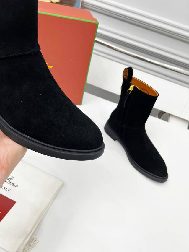 工厂P直销头层牛猄皮430G02代购级别所见即所得Loro Piana 诺悠翩雅 L S秋冬新款 Kilda踝靴侧拉链短靴 这款标志性踝靴采用打蜡牛皮革 绒面羊皮材质,赋予其质朴而独特的复古美感。休闲而精致的款式既适合都市造型,也适合轻松的周末装扮。鞋底为Loro Piana防滑橡胶底。皮革衬里,内侧拉链开合,上部配同色系拉链头 后侧金属色细节。镌刻品牌徽标皮革环形拉袢 一体式同色系橡胶鞋底橡胶鞋底,带防滑Lp细节! 鞋面:进口对版小牛皮 磨砂皮 内里垫脚:牛皮 鞋底:原版开模橡胶大底 码数:35-40