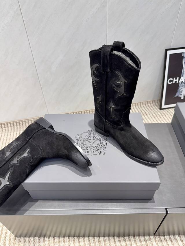 工厂p 独家顶级版本 DDD Sartore~2025Vs秋季最新款爆款靴子系列 DDD 复古一脚蹬高靴 DDD 这款靴子采用一脚蹬元素的融入,呈现出自然复古的质感。圆鞋头设计线条流畅,简约大气,既显高挑身材,又能有效提升舒适度,而鱼鳞纹防滑橡胶底则具有出色的耐磨性和防滑性,让你在任何场合都能保持稳定与自信。靴子的后拉链穿脱设计也充分考虑到了实用性,集舒适、实用与时尚于一身,是你鞋柜中不可或缺的百搭单品。 DDD 面料: 原版定制牛猄做旧工艺 DDD 内里: 原版定制羊皮 DDD 垫脚: 原版定制羊皮 D