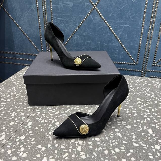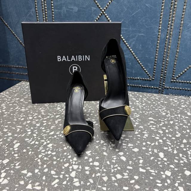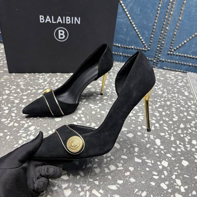 巴尔曼最新款走秀时装高跟单鞋 巴尔曼由法国时装设计师 皮埃尔.巴尔曼 先生创立于1945年的老牌定制时装屋,与、并列成为二战之后的定制时装三巨头 此款采用纯手工精工打造别具一格的时尚元素 材质:羊京皮 金属牛皮 内里:牛皮 跟高:9.5Cm 大底: 真皮大底 饰扣: 原版饰扣开模 码数: 36--42码 40.41.42定制不退换 价格