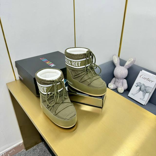 布款短靴 月亮鞋 DDD Moon Boot 24Ss 秋冬最新款雪地靴系列 丑萌雪地短靴 DDD 忘了Ugg吧,时髦人都在穿Moon Boot雪地靴 如果你难以接受Ugg的复兴 DDD 那现在有一款更另类的雪地靴又杀回来了 内增高4 Cm那就是Moon Boot月亮靴 DDD 在千禧年就已经非常火了 当年paris Hilton、Victoria Beckham 等名人经常穿它,如今Y2K风潮再次流行 DDD 痞幼同款Qq秀穿搭 万人大秀的丑萌雪地靴重新翻红 不分男女不分左右 看着巨无霸巨显瘦还暖和好穿