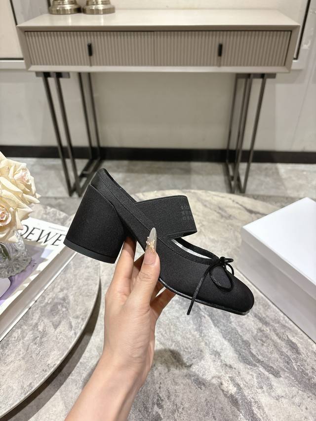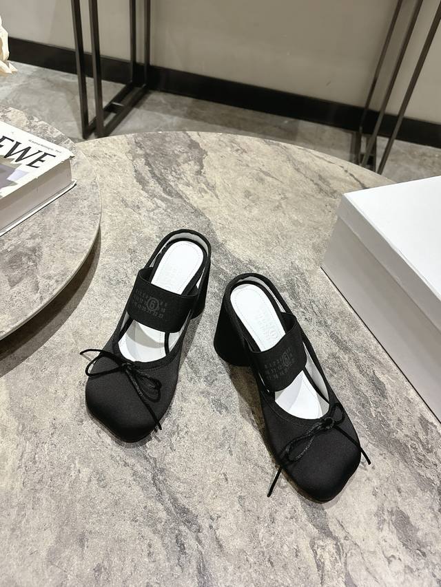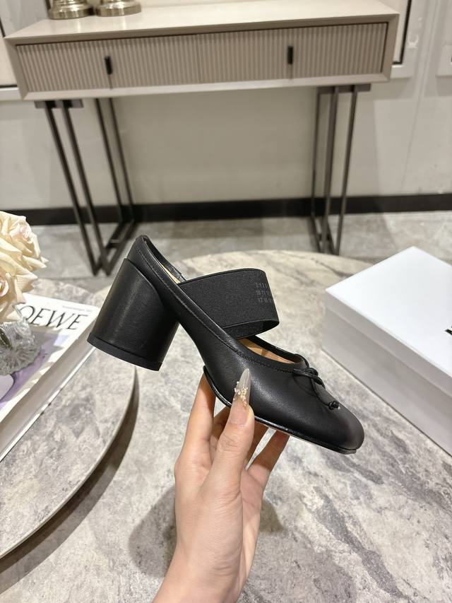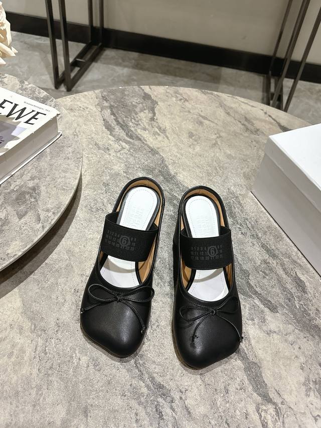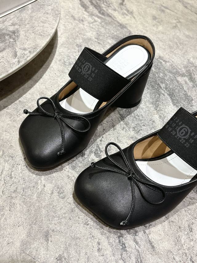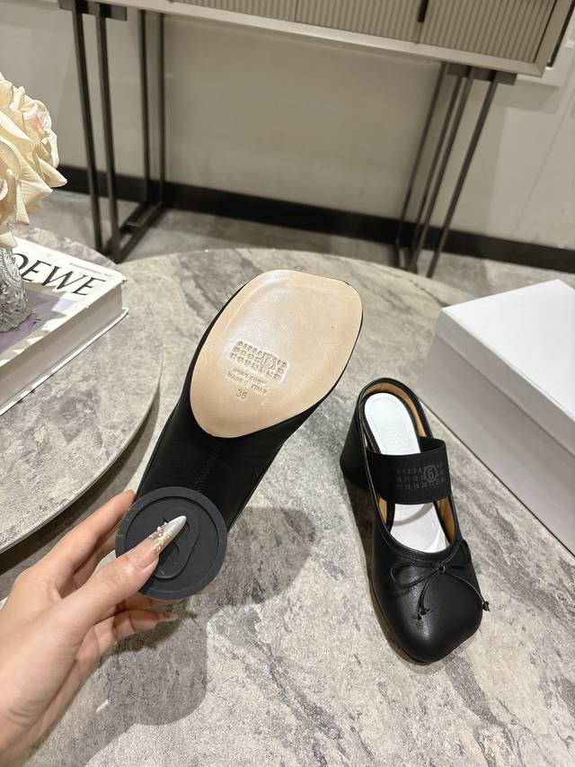 布面 , 牛皮 ; Maison Margiela Mm6粗跟苹果头芭蕾舞鞋2025秋冬 马吉拉设计师太有才了 采用粗跟作为设计元素打造鞋品 单鞋干练精致 半拖搭配短裙 性感个性 面料牛皮 布面 内里牛皮 原版开模鞋跟 意大利进口真皮大底 鞋跟: 7Cm 码数:35-40 40订做不退不换