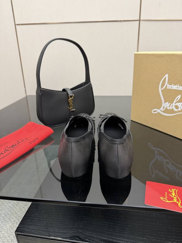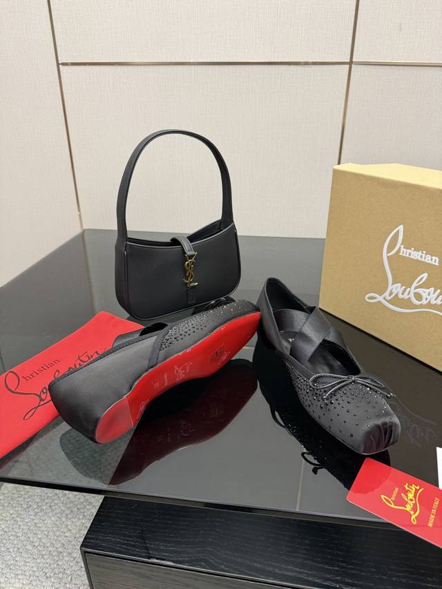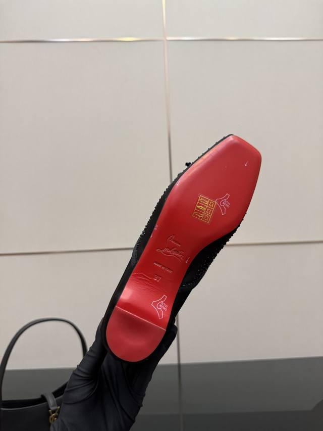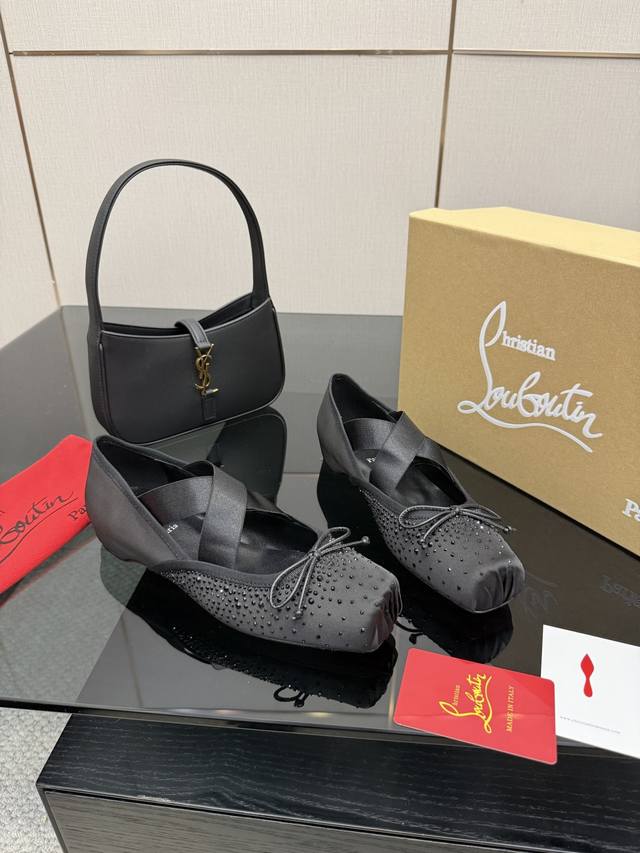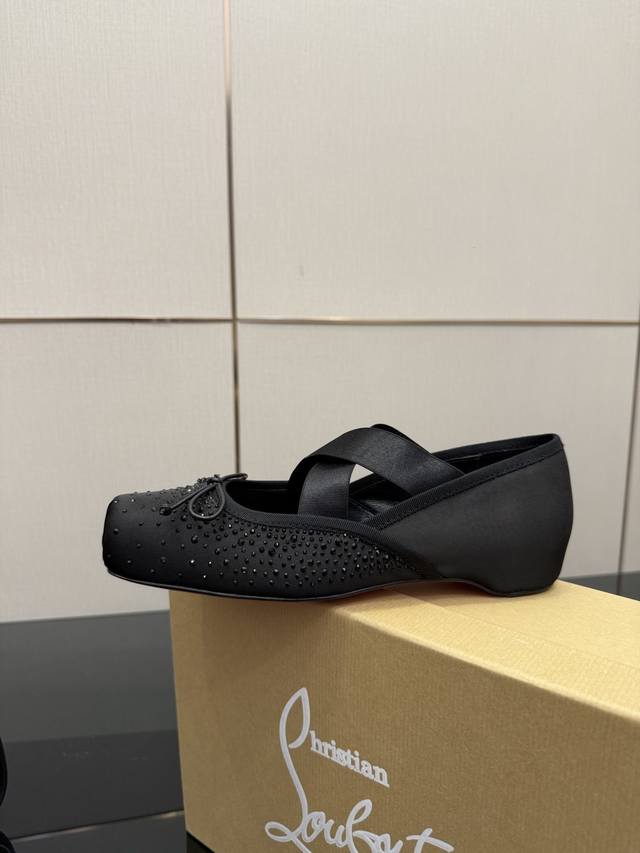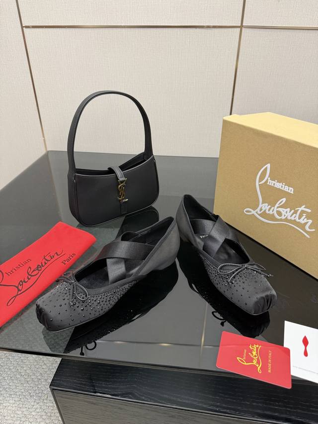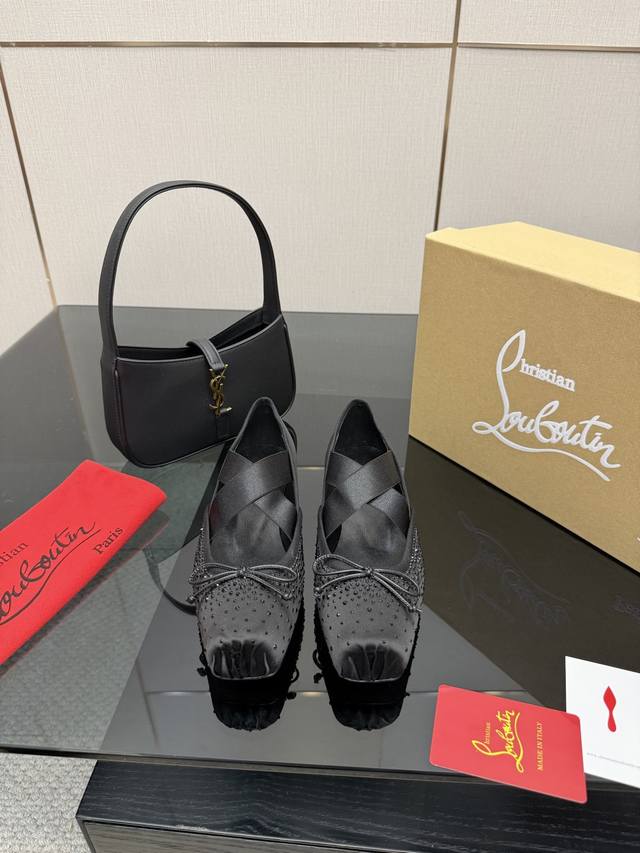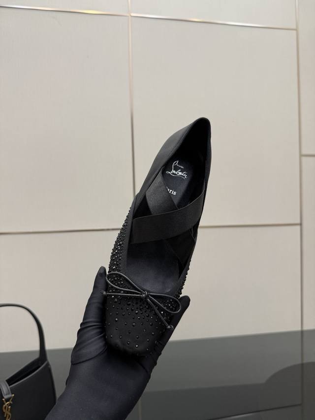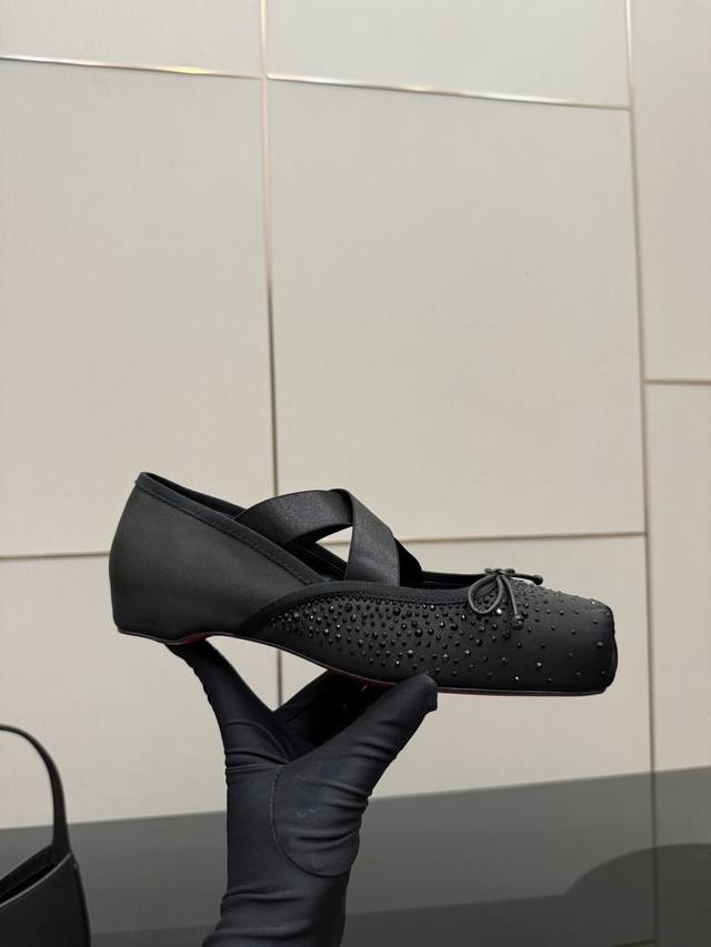 带钻 Christinlouboutin Cl25Wf新品 水钻蝴蝶结猪鼻子交叉带芭蕾舞鞋 在时尚的舞台上Cl始终是璀璨的明星 而这款猪鼻子凉鞋 更是品牌的得意