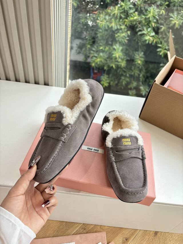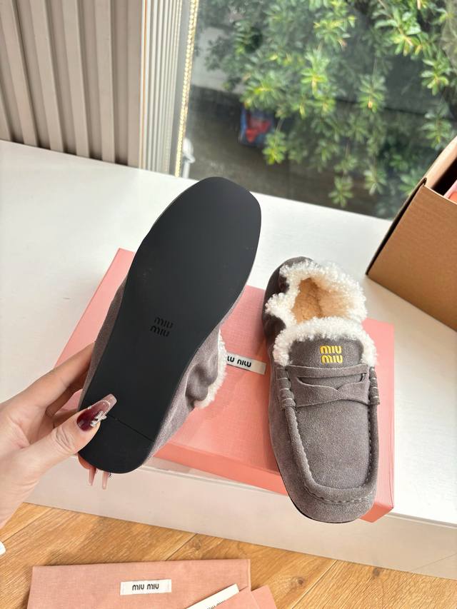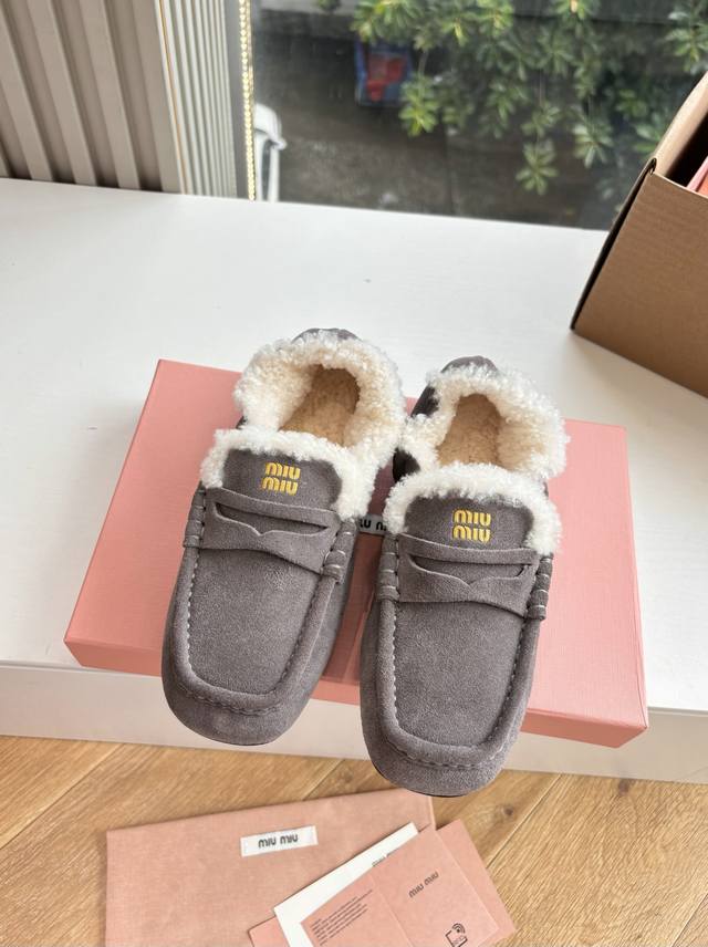 / 带飞机盒所见即所得G042现货供应Miumiu*缪缪厚底2025年新款英伦风羊毛乐福鞋棉鞋怎么穿都好看今夏时髦精最爱看起来不怎么舒服 上脚超级舒服面料:磨砂鹿皮