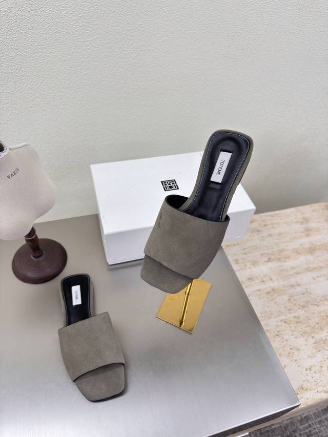 / 平底 深口拖鞋 TotêMe 法式浪漫 方头 极简 方头 出厂 灰色 北欧简约设计 轻奢品牌 面料 高丝光牛反绒皮 舒适 高端油边工艺 内里选用羊皮内里 搭配包