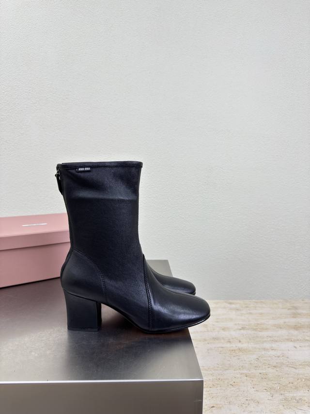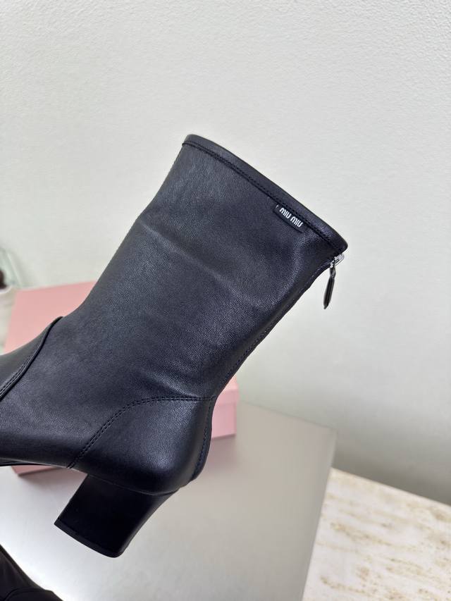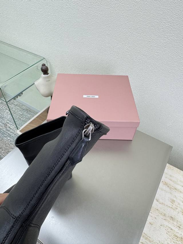 弹力羊皮 昂贵 Miu'miu 乐福鞋 黑色弹力羊皮植揉工艺小羊皮 中跟设计 系列 Miu'miu 经典舒适 制作 原版一致 成型大底 高版本 面料 植揉羊皮