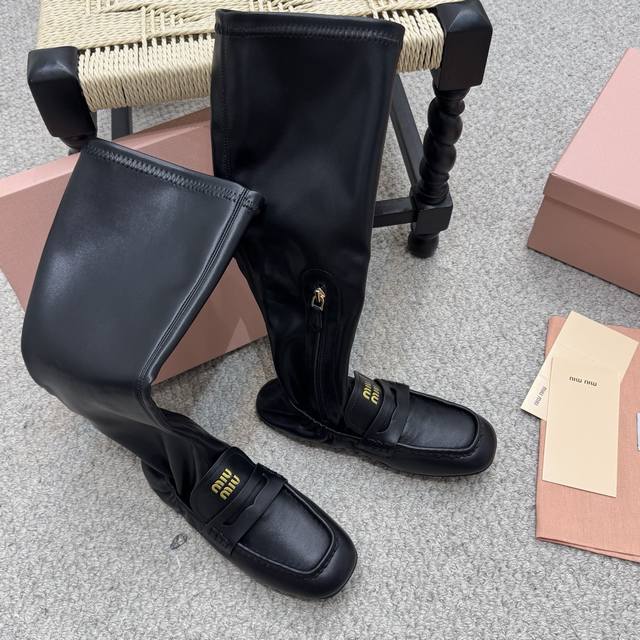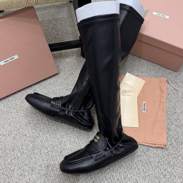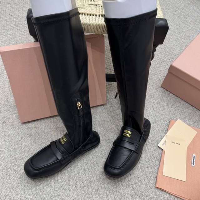 / 弹力靴 Miumiu缪缪2025秋冬最新走秀款长靴 走秀款出镜率最高的单品 Miu家订货会一鞋难求 超多明星时尚博主种草 细节扣子原版一比一复刻 今年最值得入手