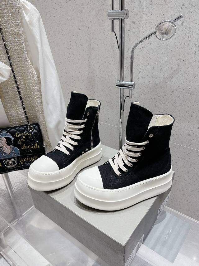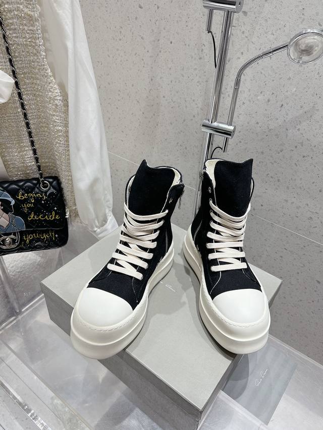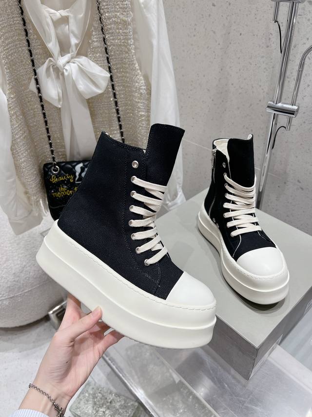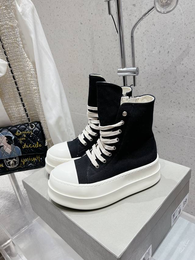 Rick Owens欧文斯 24Ss 新款情侣款机车靴绑带短靴