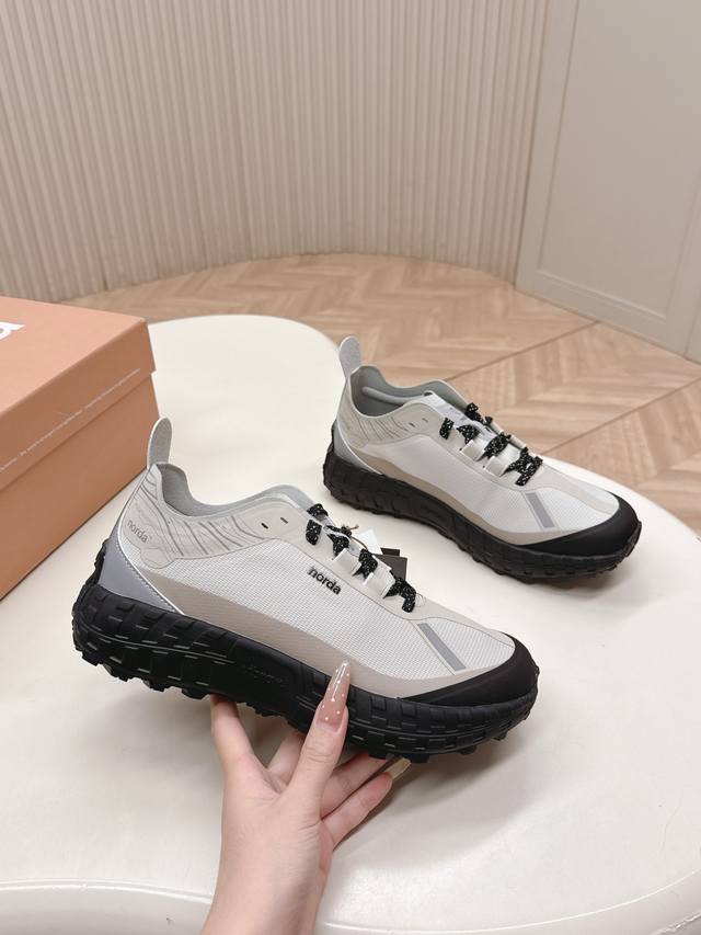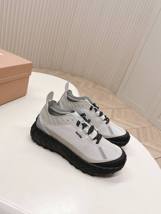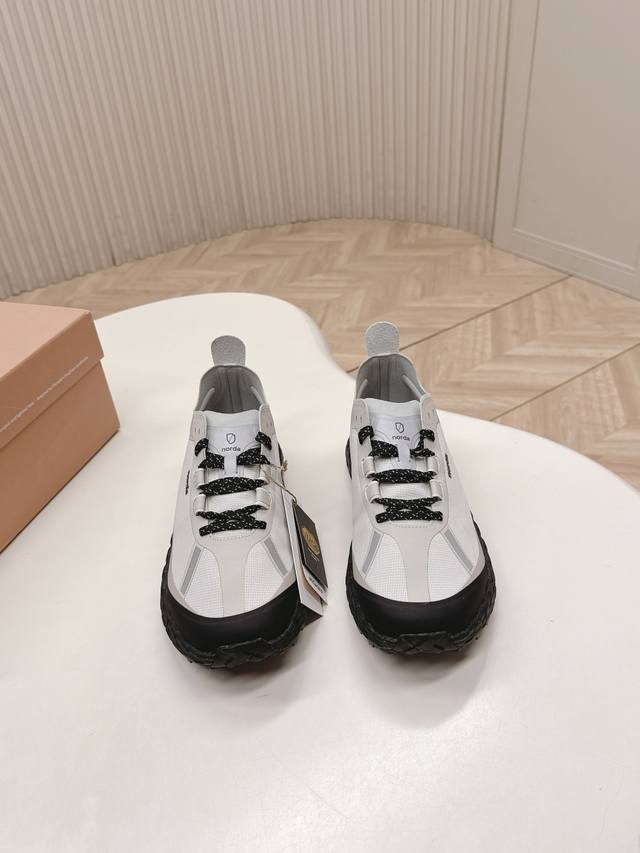 情侣款Norda 户外运动鞋,专为挑战荒野与山野的勇者设计。采用尖端科技与高性能材质,轻量化鞋身搭配强悍抓地力,无惧陡峭岩壁、泥泞小径或湿滑溪流,每一步都稳如磐石。 DDD Vibram 超强大底 仿生齿纹设计,攀岩涉水如履平地。 DDD 动态缓震中底 :吸收冲击力,长距离徒步依旧舒适不累脚。 透气防水科技 Gore-Tex 内衬,暴雨闷热皆保持干爽。 DDD 轻量耐磨鞋面 抗撕裂材质,直面碎石荆棘,依旧耐久如新。 DDD 码数:36-45 DDD