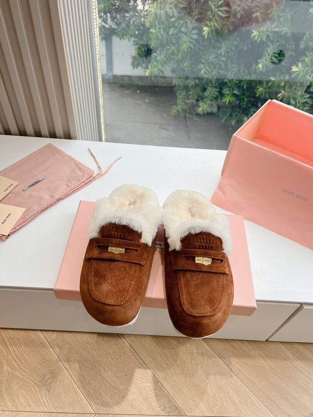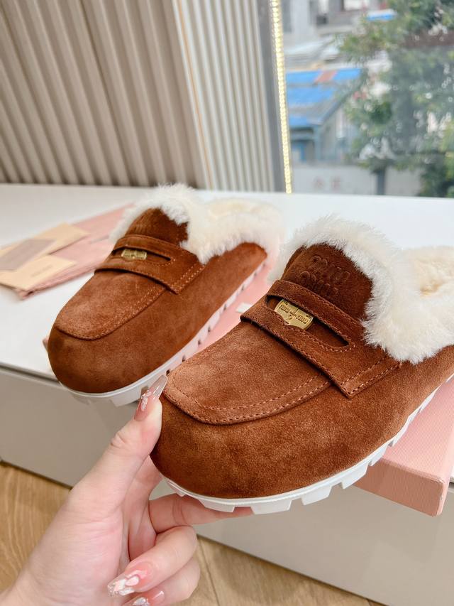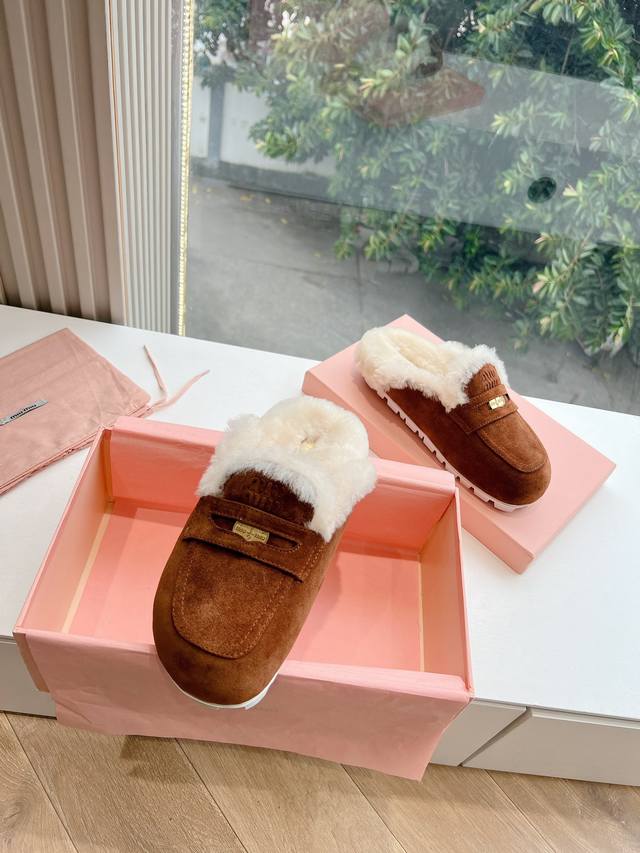 / 所见即所得刺绣Logog0286现货供应Miumiu*缪缪厚底 年新款英伦风包头毛拖 怎么穿都好看今夏时髦精最爱 看起来不怎么舒服 上脚超级舒服 面料:磨砂鹿皮