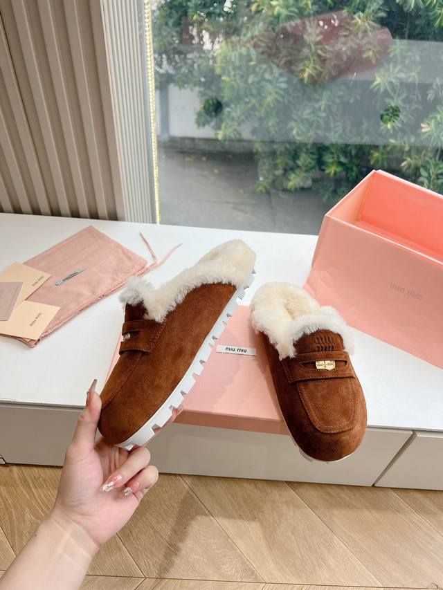 所见即所得刺绣Logog0286现货供应Miumiu*缪缪厚底 年新款英伦风包头毛拖 怎么穿都好看今夏时髦精最爱 看起来不怎么舒服 上脚超级舒服 面料:磨砂鹿皮