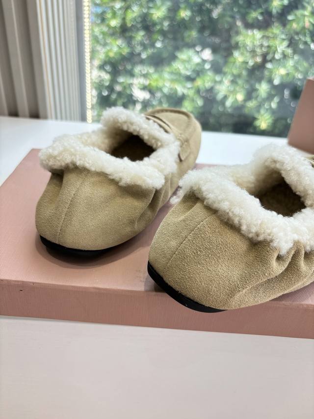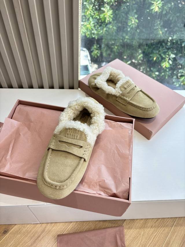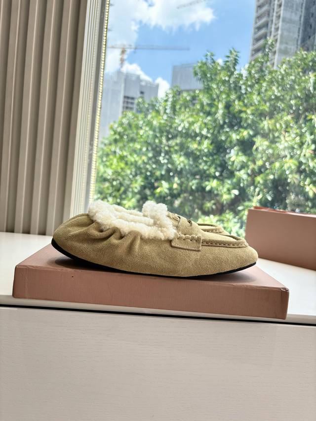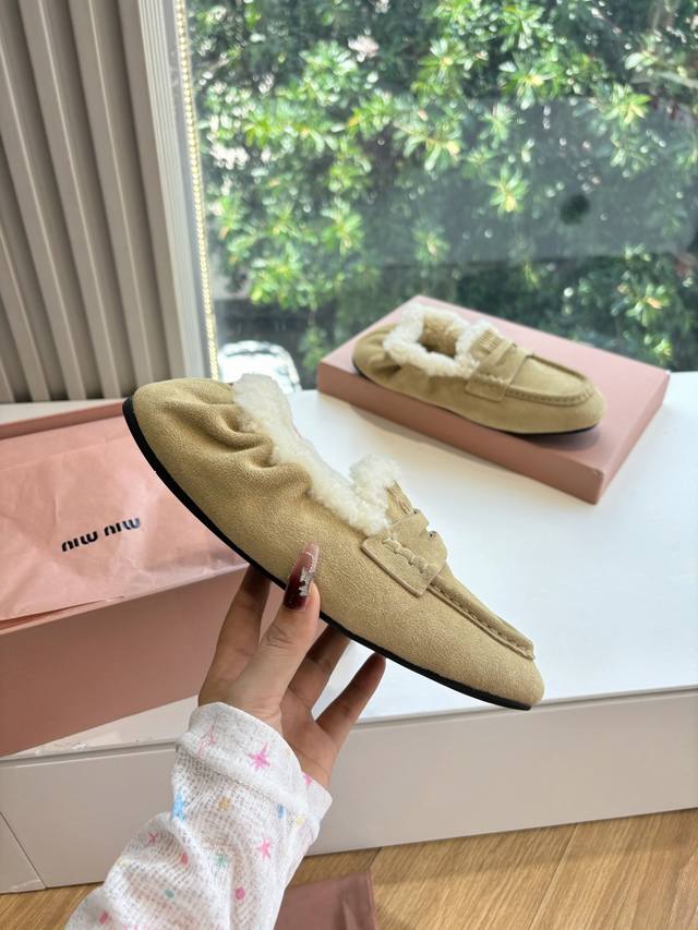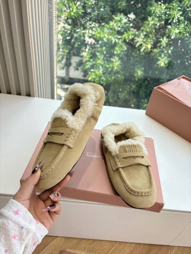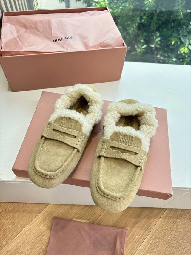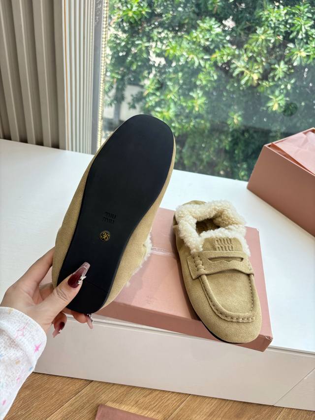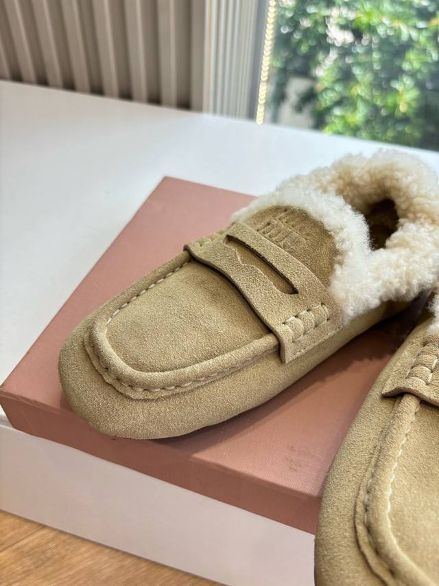 所见即所得G0286现货供应Miumiu*缪缪厚底2025年新款英伦风羊毛乐福鞋棉鞋 怎么穿都好看今夏时髦精最爱 看起来不怎么舒服 上脚超级舒服 面料:磨砂鹿皮 内里:牛皮 大底:原版鞋底 码数:35-40 40.41订做不退换