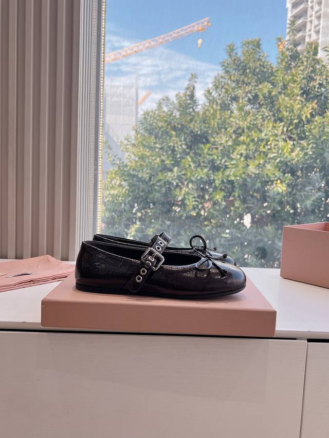 / 所见即所得G0286顶级版本 代购级别2025春夏时装周Miu Miu谬谬新出的皮带扣玛丽珍芭蕾乐福鞋真的让人一整个心都融化除了中间夹着一颗钱币这种细节之外、鞋