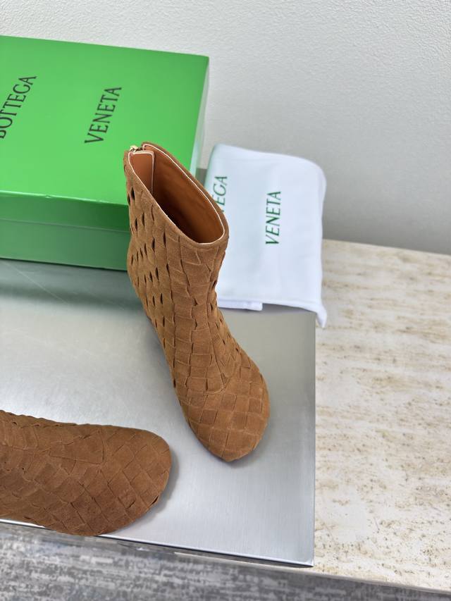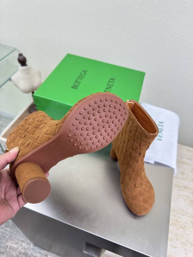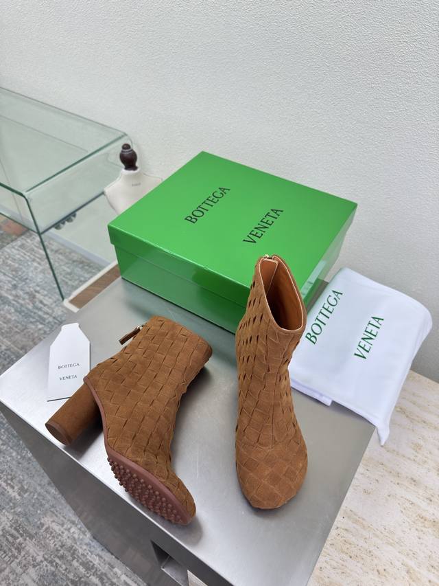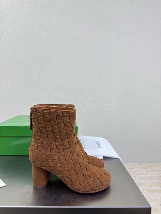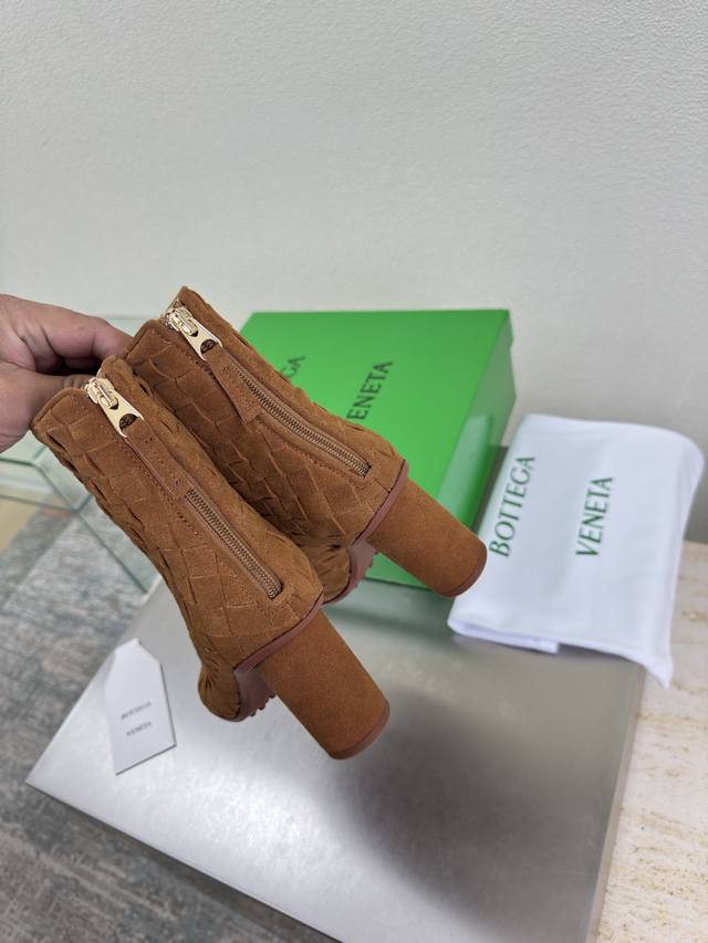 手工编织 编织系列 Bv Atomic系列 DDD 圆跟开边朱踝靴 DDD 棕色麂皮 DDD 这款圆头 宽扁的流线头型 当今流行的又一趋势 天花板啦 DDD 5彩色百搭 DDD 手工编织而成 DDD 精致圆形跟 包裹面料 同色跟皮 用心设计 绝不马虎 耐穿舒适 DDD 鞋面材质选用同原版 柔软顺滑 DDD 手工缝制后拉链开合设计 性感舒适 DDD 后拉链位置油边工艺 DDD 垫脚内里选用羊皮内里舒适高端 DDD 大底选用原版开模 一致的Tpu大底 DDD 对标对版 DDD 选用原版包装 DDD 鞋子布袋采