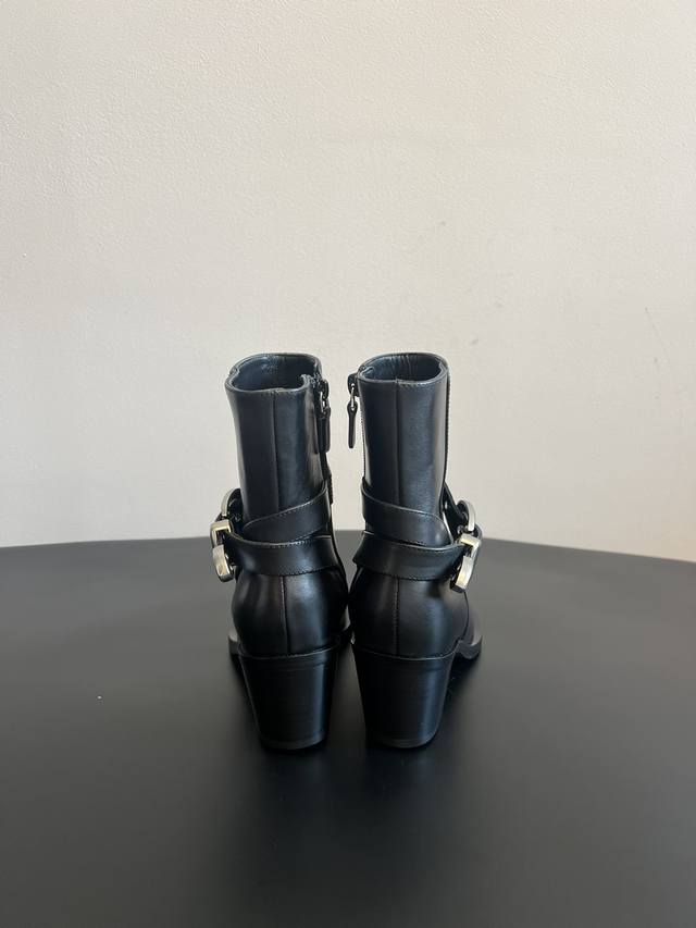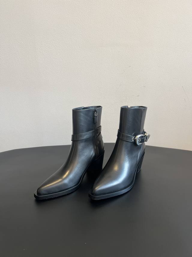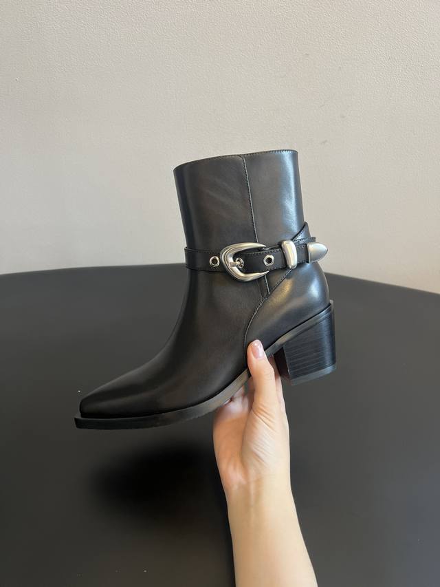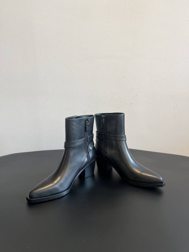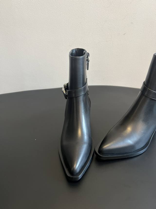 批牛京 牛皮 代购级 Sw 25复古摩登尖头短靴 采用质感细腻的驼色麂皮打造,触感柔软且富有复古韵味。金属扣带设计为点睛之笔,既具装饰性又能提升靴款的立体感,侧边拉链方便穿脱,工艺细节彰显品质。 尖头设计搭配粗跟,在修饰脚型的同时,增添了干练气场,粗跟还保证了行走的舒适度。整体靴型简约利落,驼色麂皮的复古质感与金属扣的精致感碰撞,风格百搭且有记忆点。 鞋面:牛反绒 牛皮 内里:羊皮 大底:Ip发泡大底 Size:35-40 40定制不退换