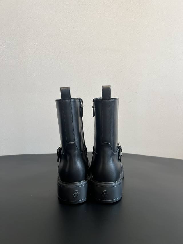 批牛京 牛皮 代购级 Sw25 复古摩登尖头短靴 鞋身带有金属扣饰的皮带设计,增添了朋克与复古的风格元素;配备侧边拉链,穿脱方便;采用厚底粗跟,在提升身高的同时,保证了行走的稳定性,风格偏向于复古机车风与休闲风的结合。 与卡其色或棕色系的半身裙、A字裙搭配,上衣搭配同色系的毛衣或针织衫,营造复古温柔的秋冬穿搭;也可与黑色紧身裤搭配,上衣选择灰色大衣,展现复古与高级感并存的风格。 鞋面:牛反绒 牛皮 内里:羊皮 大底:Ip发泡大底 Size:35-40 40定制不退换