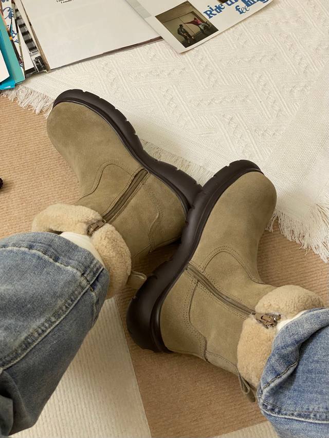抗寒黑科技: 羊皮毛一体内里 1.5Cm恒温澳洲进口羊毛层 头层牛皮防风护盾 实测-20℃依然暖如拥抱 尺码:35-40 厂价p: