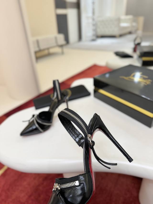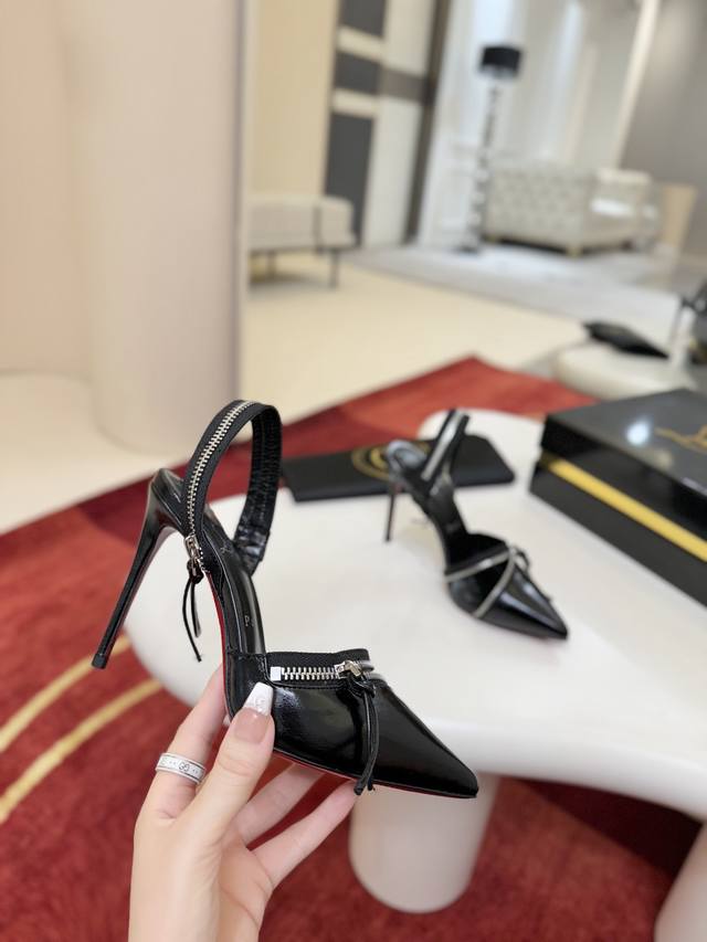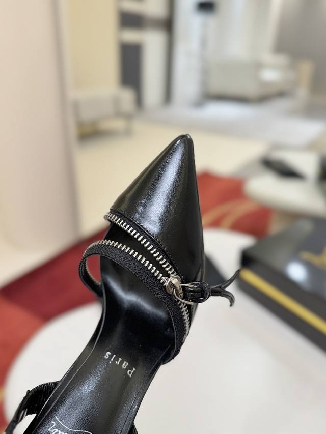 拉链凉鞋W. DDD 自2001年以来,拉链就一直是Maison Christian Louboutin Dna的一部分,是大胆精致的标志。Slingyzip 鞋款在鞋面上有一个大胆的金属人造拉链,另一条拉链沿着斜挎带。这款尖头鞋款采用光滑的黑色小牛皮制成,表面有光泽和色调内衬。它搭载在100毫米的高跟鞋跟上,配有软垫鞋垫。 DDD Size:35码-44码 DDD 40.41.42.定做不退不换,43.44码40 DDD 跟高:10Cm 8.5Cm可定做 DDD 颜色:黑 棕 DDD