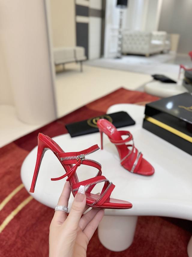 拉链拖鞋W. DDD 自2001年以来,拉链一直是Maison Christian Louboutin Dna的一部分,是大胆精致的标志。Merylzip凉鞋通过人造拉链作为带子,并配有软垫鞋垫,戏剧性地揭开了脚部。这款型号由闪亮的Loubi红色小牛皮制成,配有色调内衬,具有100毫米的高跟鞋跟和标志性的Loubi红色鞋底。 DDD Size:35码-44码 DDD 40.41.42.定做不退不换,43.44码40 DDD 跟高:10Cm DDD 颜色:红 黑 DDD