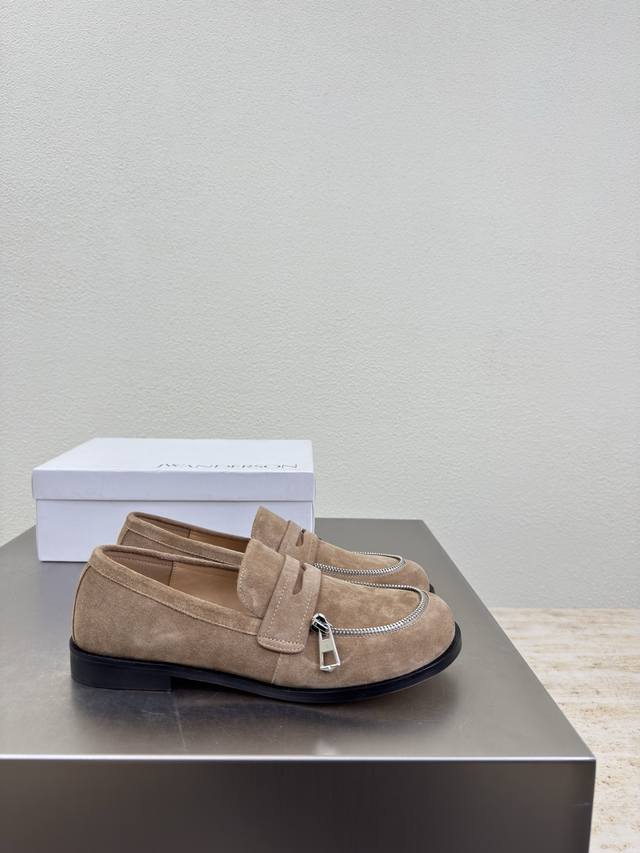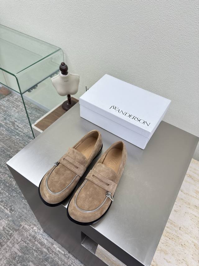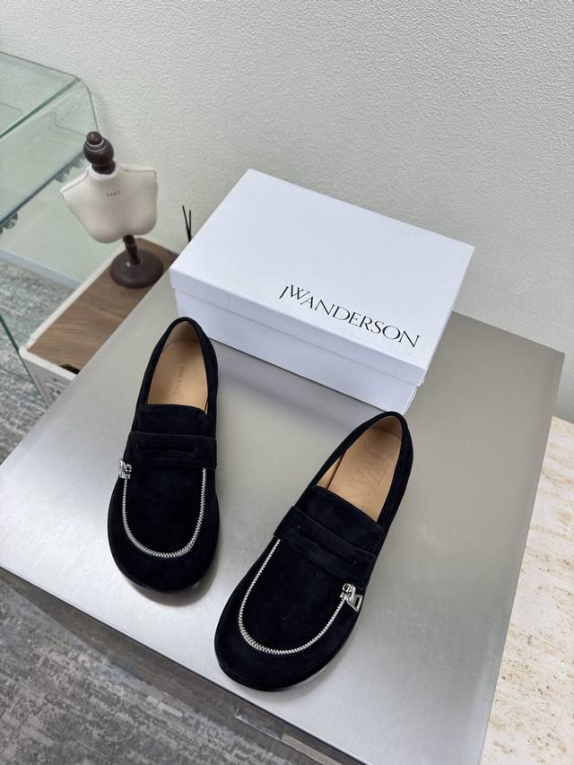 拉链款乐福鞋 即可福鞋 J W 设计师品牌 女鞋 黑色&杏色档次满满 防滑大底设计 有着若隐若现的魅力。 元素的加入为精致的鞋体注入更多反叛和力量,展现出纤薄但