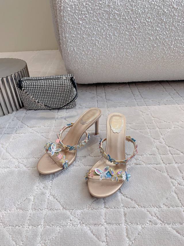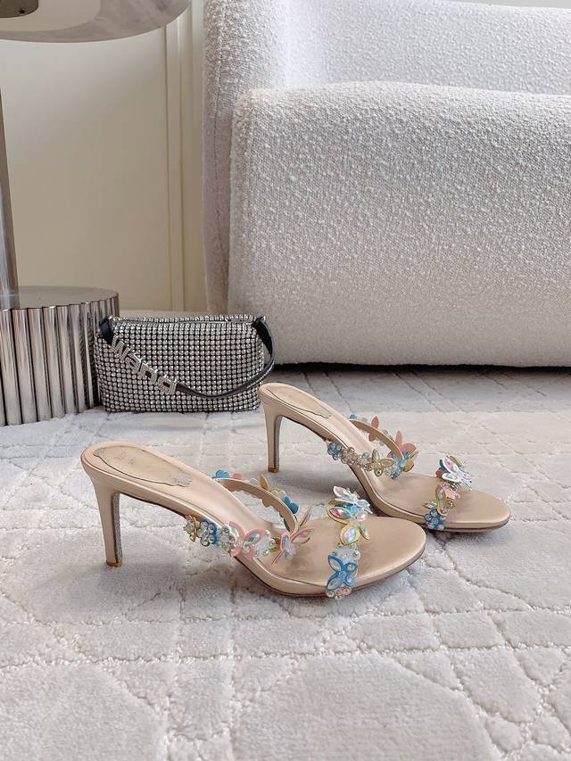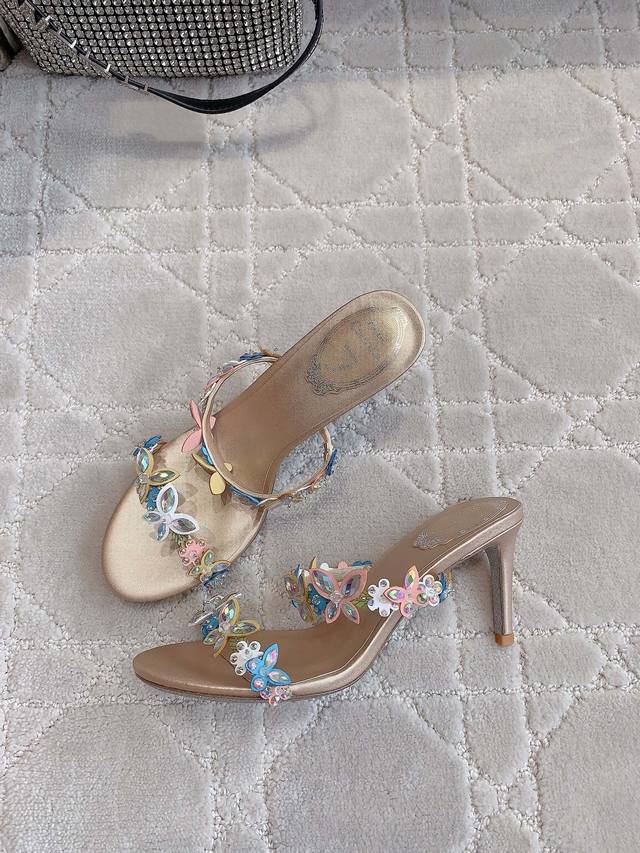 Ren* Caovill* 新款超重工高跟凉鞋 纯手工缝制花朵蝴蝶 耗工耗时 精致奢华