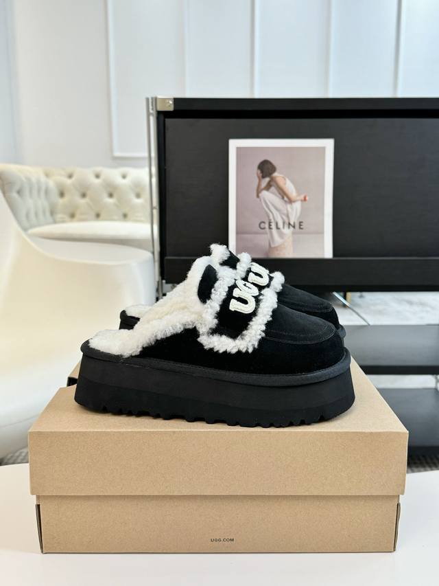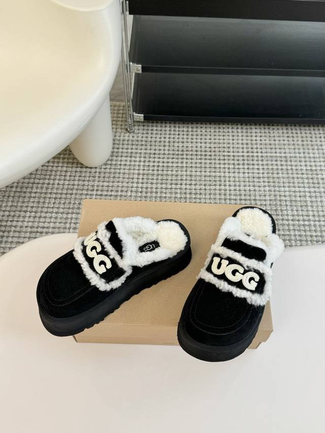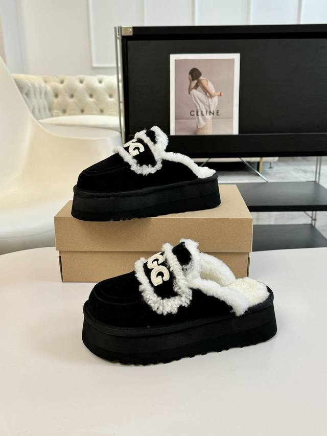 拖鞋 Ugg~Vs秋冬爆款松糕厚底休闲毛鞋系列 松糕厚底毛鞋 一款不会撞衫的鞋子、简约的隔板设计上斑点的大底、鞋面真丝卷毛、秋冬季必备款、无论什么裤子裙子都能驾
