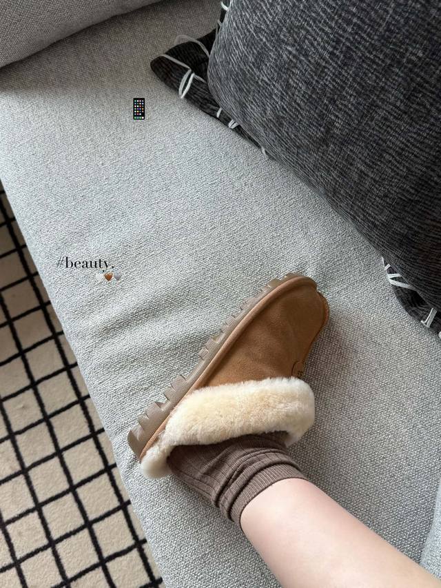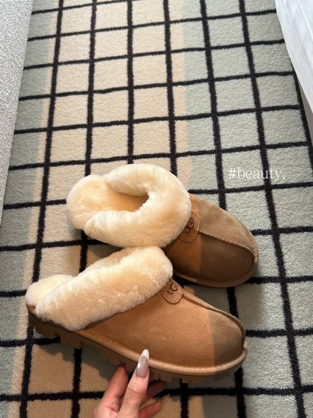 Ugg新款安思丽,一脚蹬设计,鞋口羊毛设计,保暖时尚 颜色:栗色。黑色。可可粉棕色!码数35-40 码!