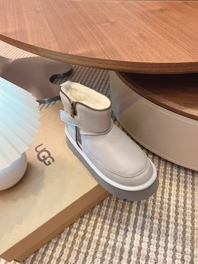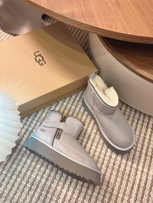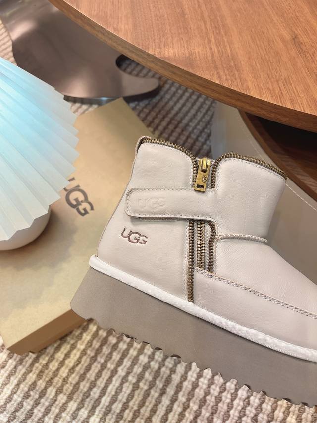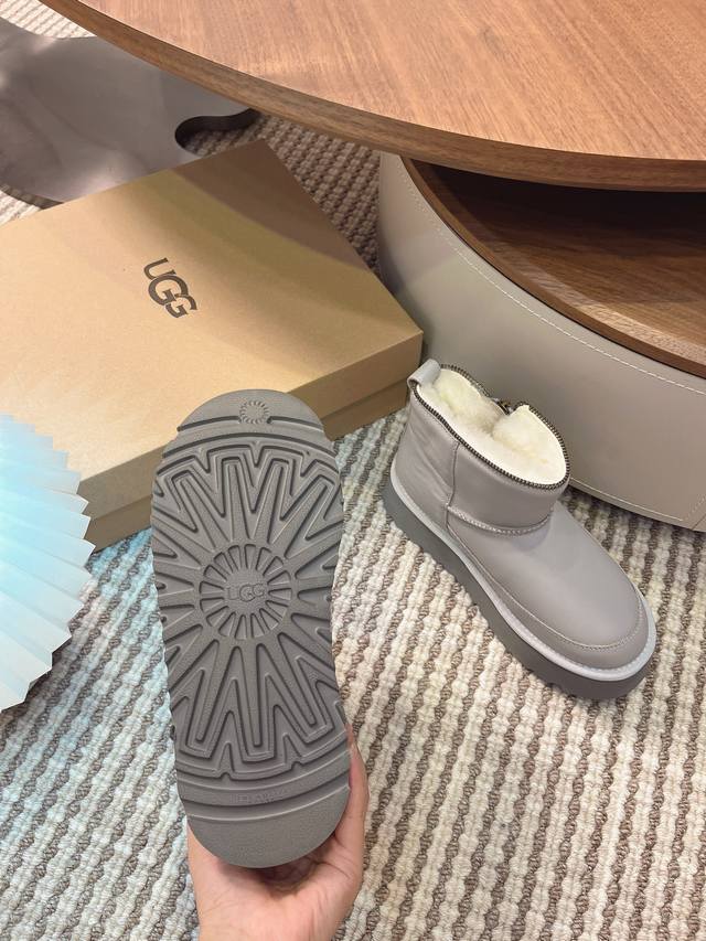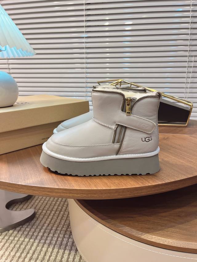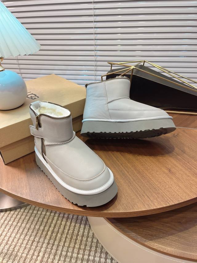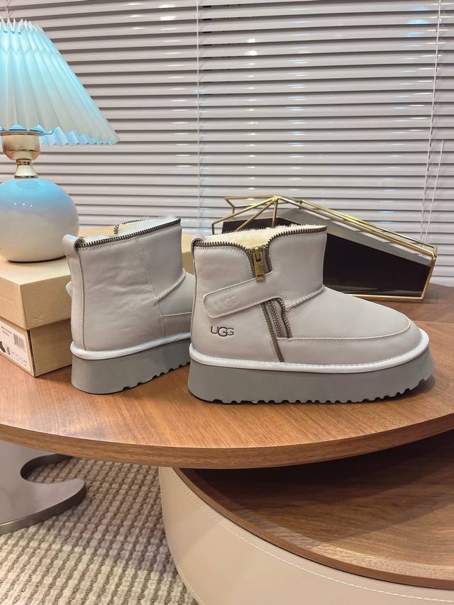 摩托款厚底 Ugg雪地靴 毛毛鞋 原版开模深凹槽高弹鞋底,原版版型,25S主推机车靴,百搭风格,配金属拉链更时尚 颜色 : 黑色,火山灰 码数:35~40