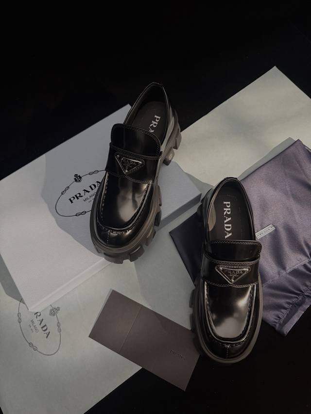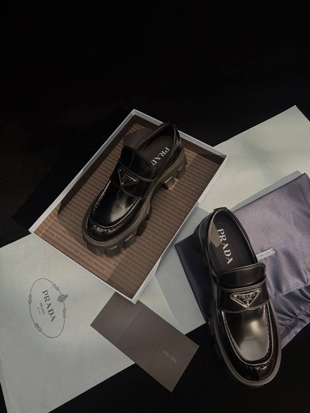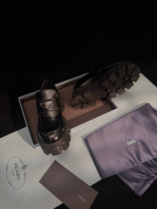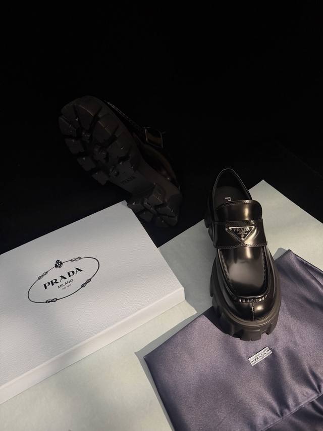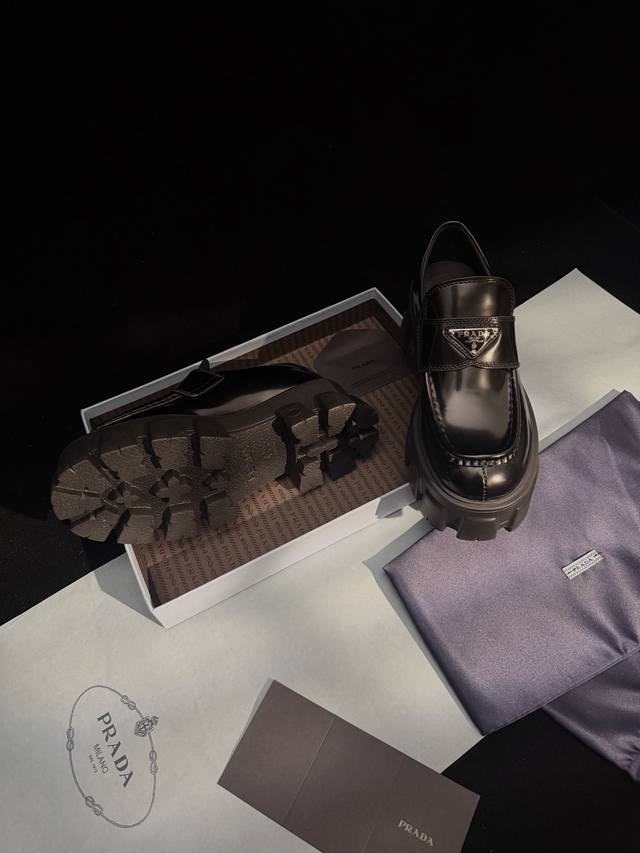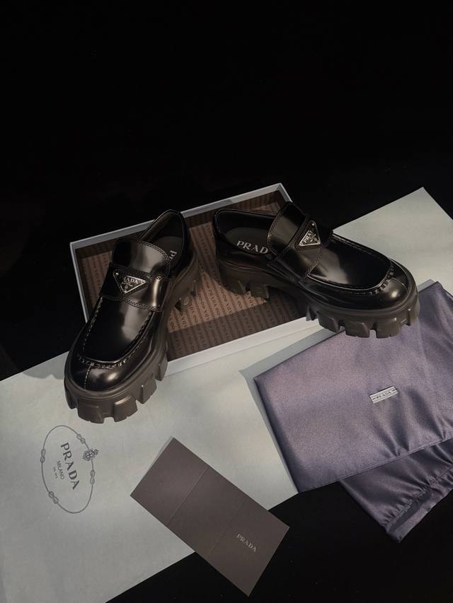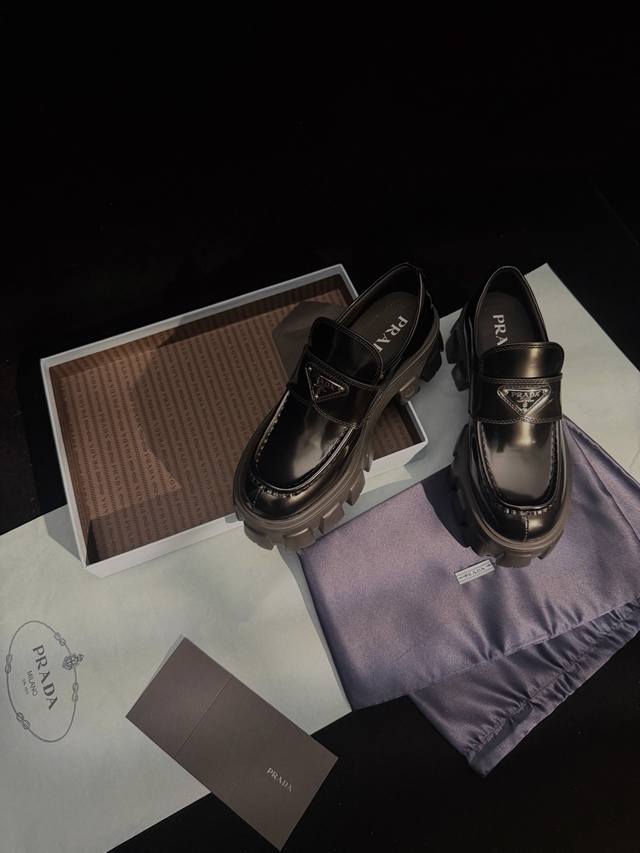 新品厚底乐福鞋 鞋跟5.5Cm乐福出新款啦,采用了更有质感的荔枝纹牛皮,加高了鞋底却保持极轻的重量。太百搭了!可盐可甜 穿各种小裙子小短裤再配个袜子很绝~ 鞋面