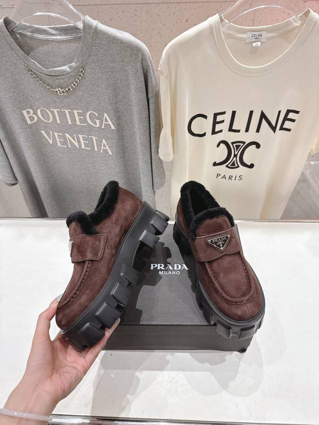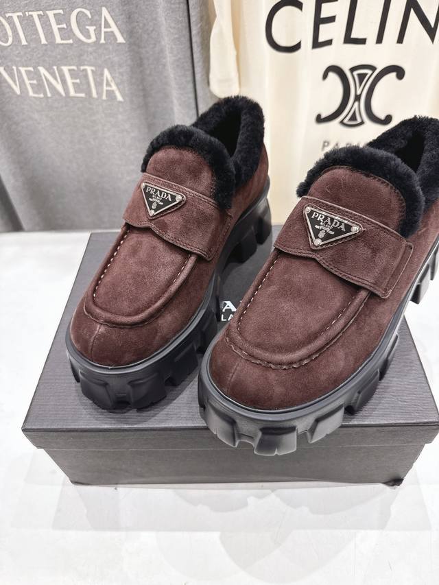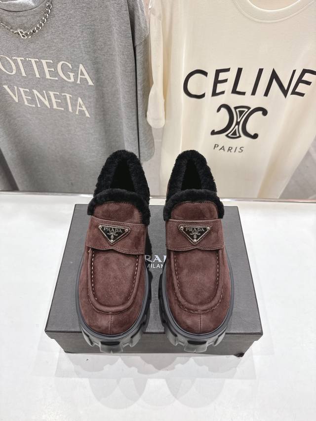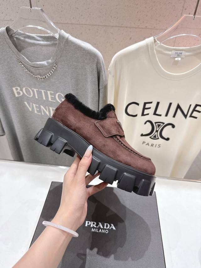 新品厚底羊毛乐福鞋 顶级品质,经典百搭四季可穿,帅气十足 日常穿搭、上班通勤的搭配利器 轻松穿出各种风格,随意搭配就很好看! 定制开模的三角扣 大牌感十足 面料