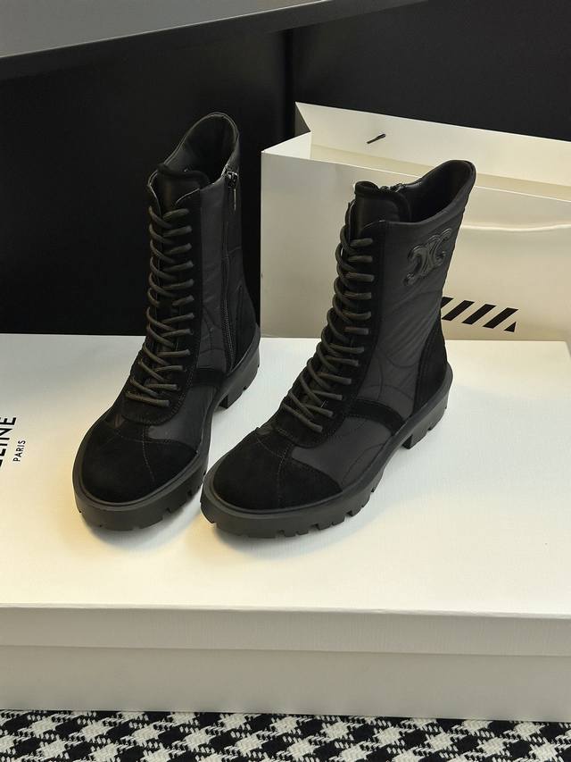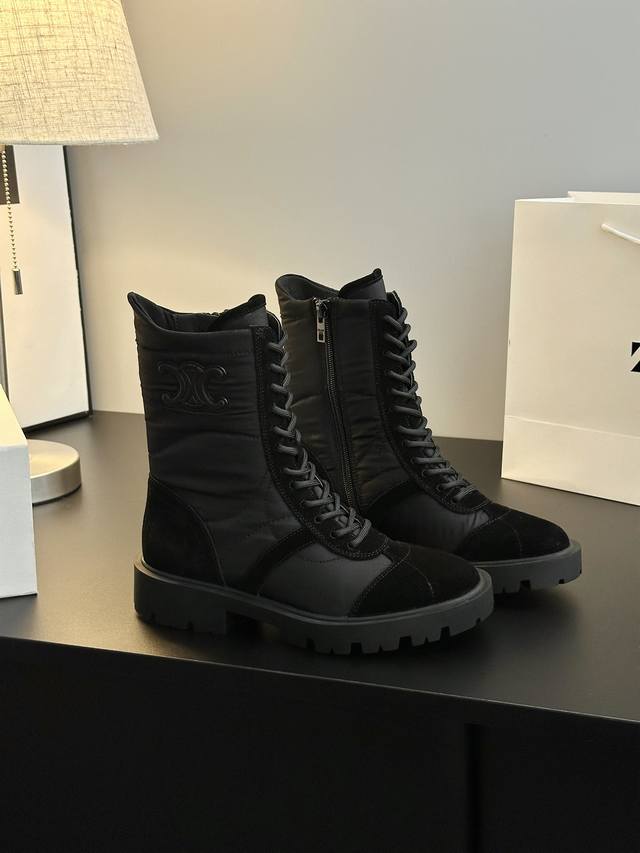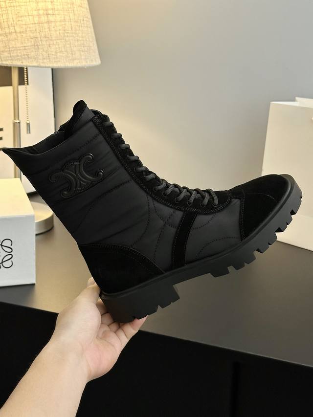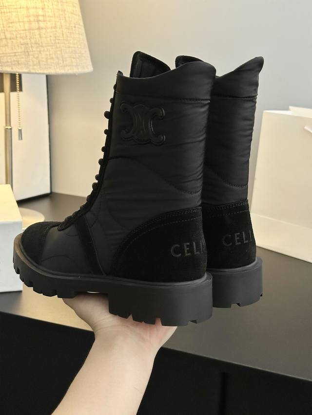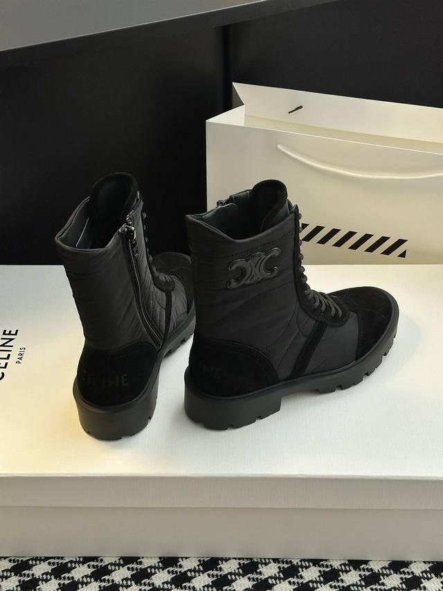新品思琳系带马丁靴 DDD 进出专柜无压力,重工版,拒绝一眼假Low货 原版楦型,调试N次、复古厚底中筒马丁靴 塞琳这一季好看的款式真的是很多,比如这款军靴就很机车风重点夸夸靴筒设计 完全不挑腿型 上脚秒变大长腿,超级显瘦又百搭!简直绝绝子 DDD 鞋面材质:绒面牛皮 原版环保羽绒布 DDD 鞋里材质:羊皮 DDD 鞋底材质:橡胶组合底 DDD 鞋码:35-40 40定做不退换 全套包装 DDD